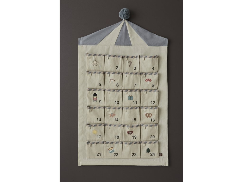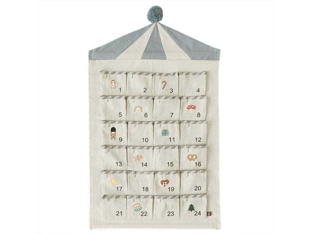 Adventním kalendářem Circus od dánské značky OYOY zpříjemníte svým ratolestem odpočítávání do Štědrého dne. Látkový kalendář můžete díky úchytům pověsit na zeď v dětském pokojíku a připevnit na něj drobné dárečky, hračky nebo čokoládky.