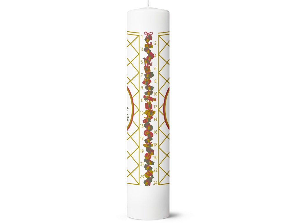 Svíčka o průměru 5 cm a výšce 25 cm je vyrobena z vysoce kvalitního rafinovaného vosku, který zaručuje rovnoměrné a čisté hoření po celou dobu adventu. Jemná barevnost v odstínech červené, zelené a zlaté vytváří harmonický celek.