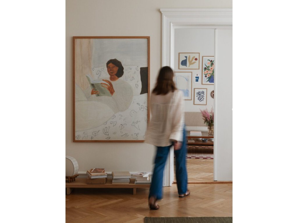 Klidné ráno, světlo prostupující závěsy a tichý okamžik, kdy se čas na chvíli zastaví. Plakát Morning Read od belgické ilustrátorky Isabelle Vandeplassche zachycuje tu nejjemnější podobu každodenního rituálu – chvíli, kdy se probouzíme do nového dne a necháváme se unášet stránkami oblíbené knihy.