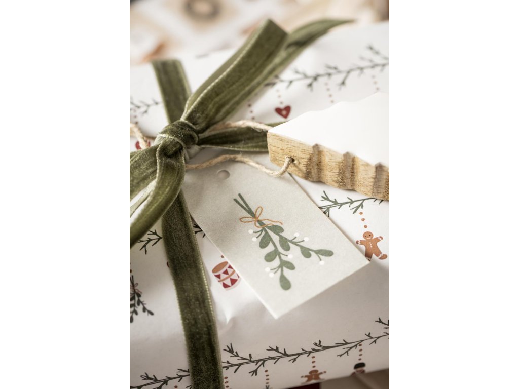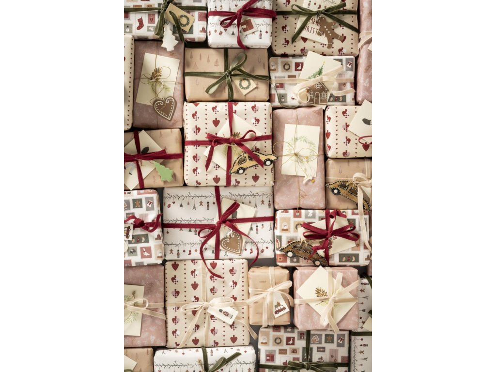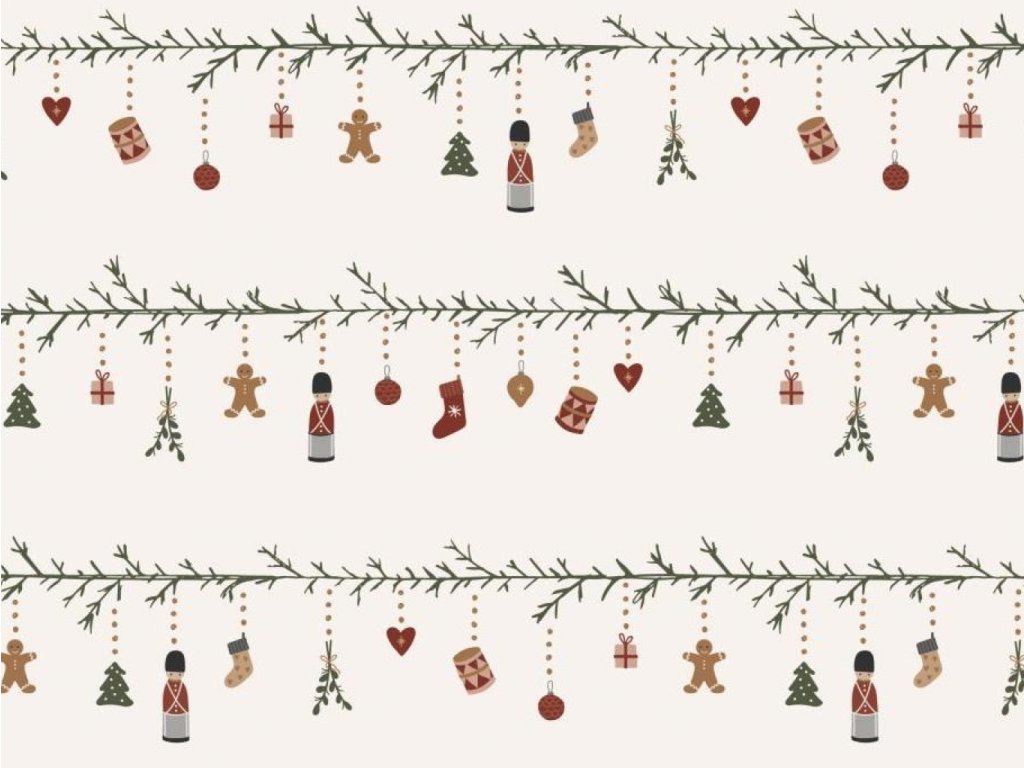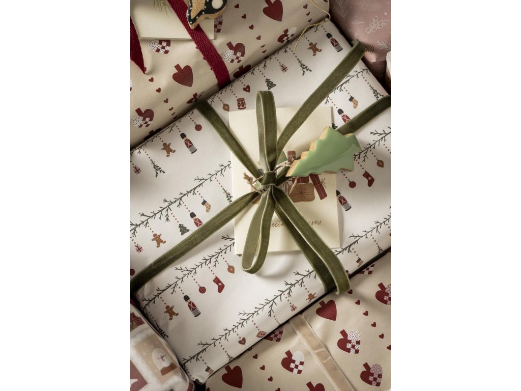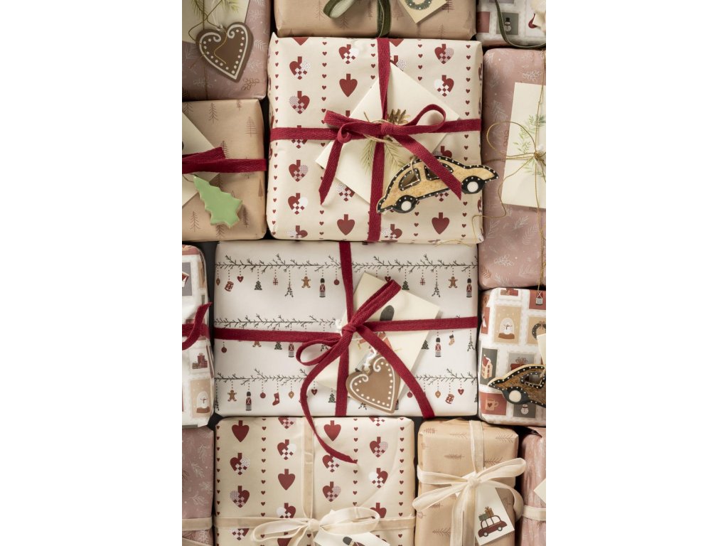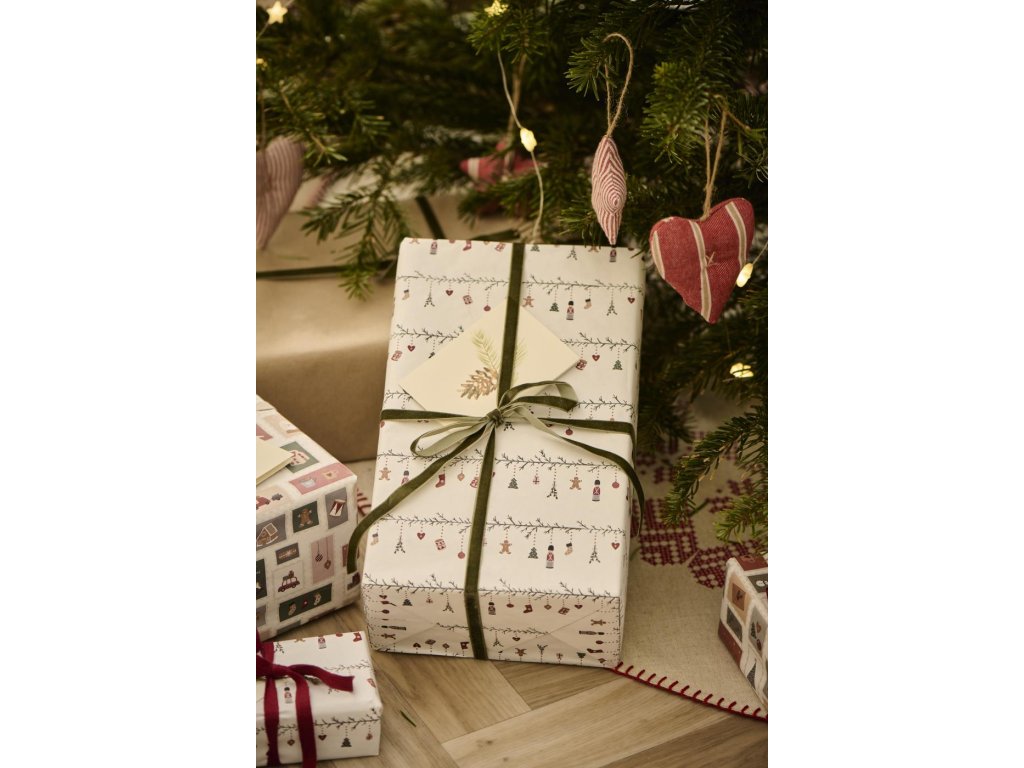 Představte si, jak vaše vánoční dárky ozdobí jemné girlandy s maličkými ozdůbkami, perníčky a vojáčky – přesně tuto kouzelnou atmosféru přináší balicí papír Christmas Garlands od dánské značky Ib Laursen. Jeho design vychází z klasických severských motivů a působí útulně, hravě a zároveň elegantně.