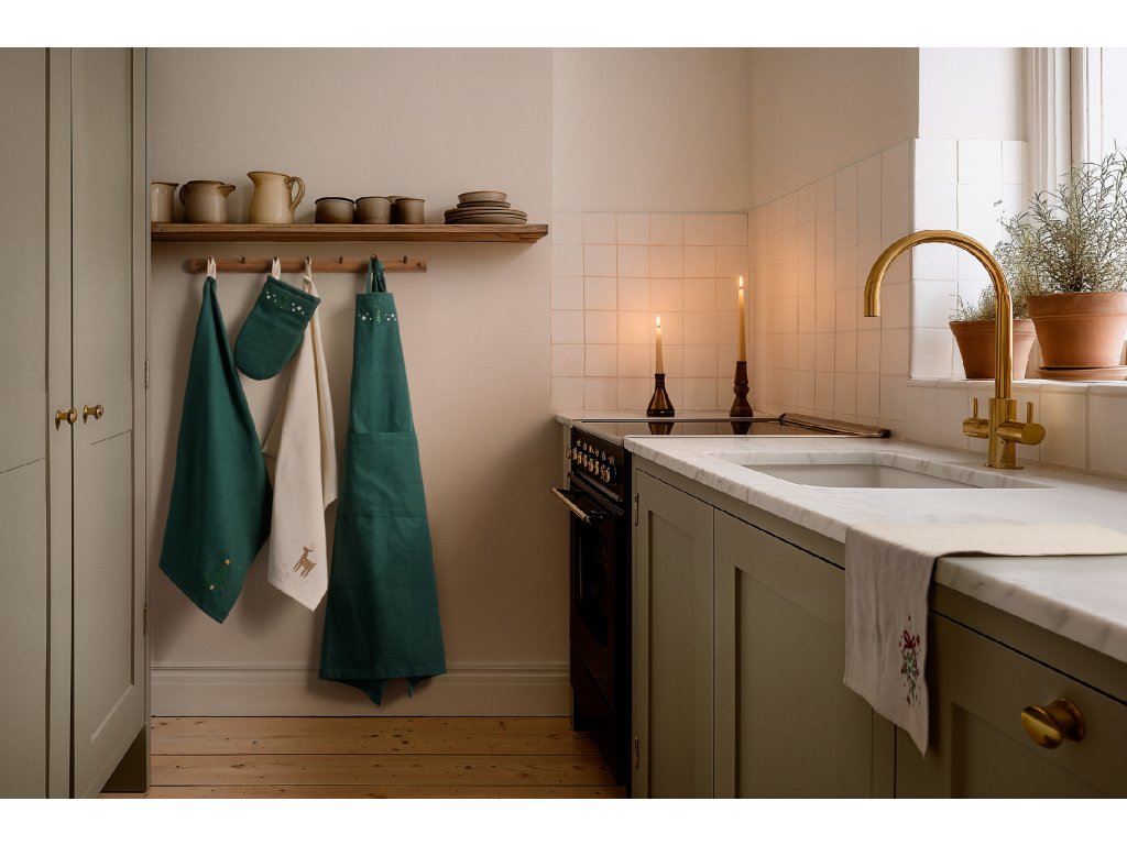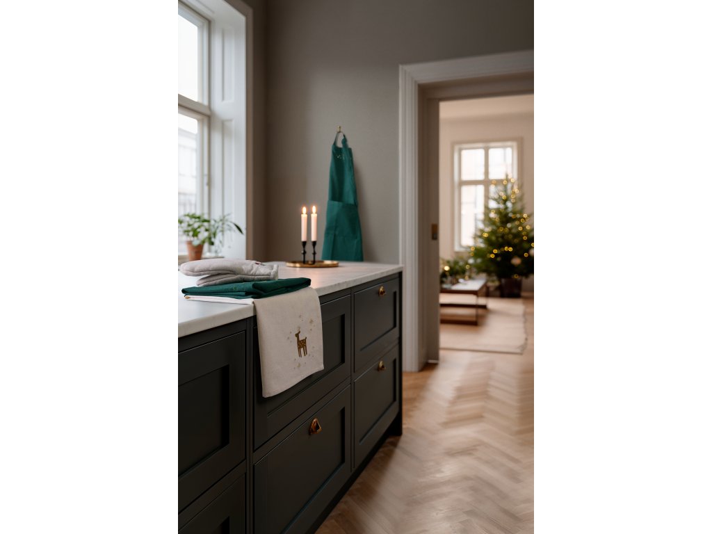 Utěrka Christmas Fable Green od dánské značky JUNA vnáší do kuchyně pohodu, teplo a vůni Vánoc. Je součástí poetické kolekce Christmas Fable, která vypráví příběh o kouzlu všedních okamžiků, tradici a fantazii, a to prostřednictvím drobných vyšívaných motivů s osobitým půvabem.