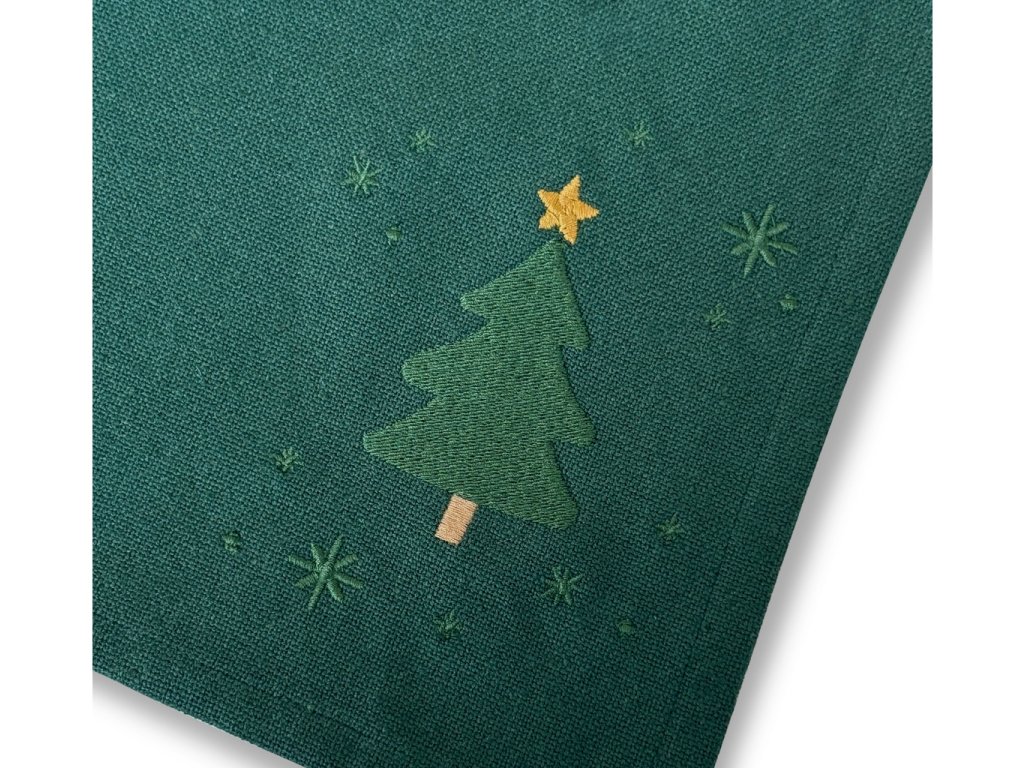 Utěrka je vyrobena z měkké směsi recyklované bavlny a polyesteru s certifikací GRS, takže je nejen šetrná k přírodě, ale i vysoce odolná a příjemná na dotek. V hlubokém odstínu vánoční zelené ji zdobí výšivka stromečku se zlatou hvězdou, doplněná decentními hvězdičkami, které jako by tiše zářily zimní oblohou.