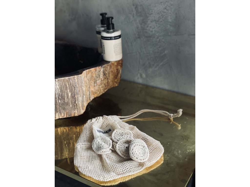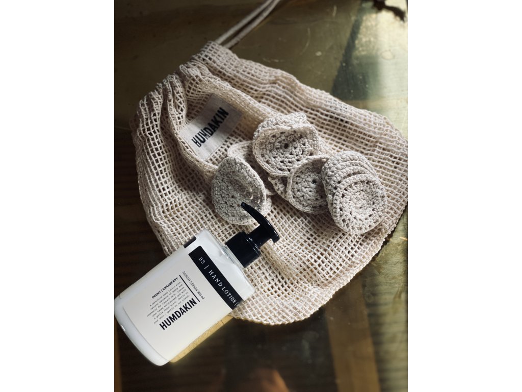 Pratelné odličovací tamponky od HUMDAKIN jsou vyrobeny ze 100% organické bavlny. Splňují standard té nejpřísnější certifikace GOTS a zajišťují tak ekologickou čistotu výroby i konečného výrobku, čímž chrání životní prostředí, zdraví lidí zaměstnaných ve výrobě a v neposlední řadě i uživatelů bio textilu. Odličovací tamponky jsou určeny pro všechny typy pleti. Sada obsahuje 15 kusů tamponků a jeden sáček, ve kterém je všechny můžete vyprat. Minimalizujte s HUMDAKIN jednorázový odpad.