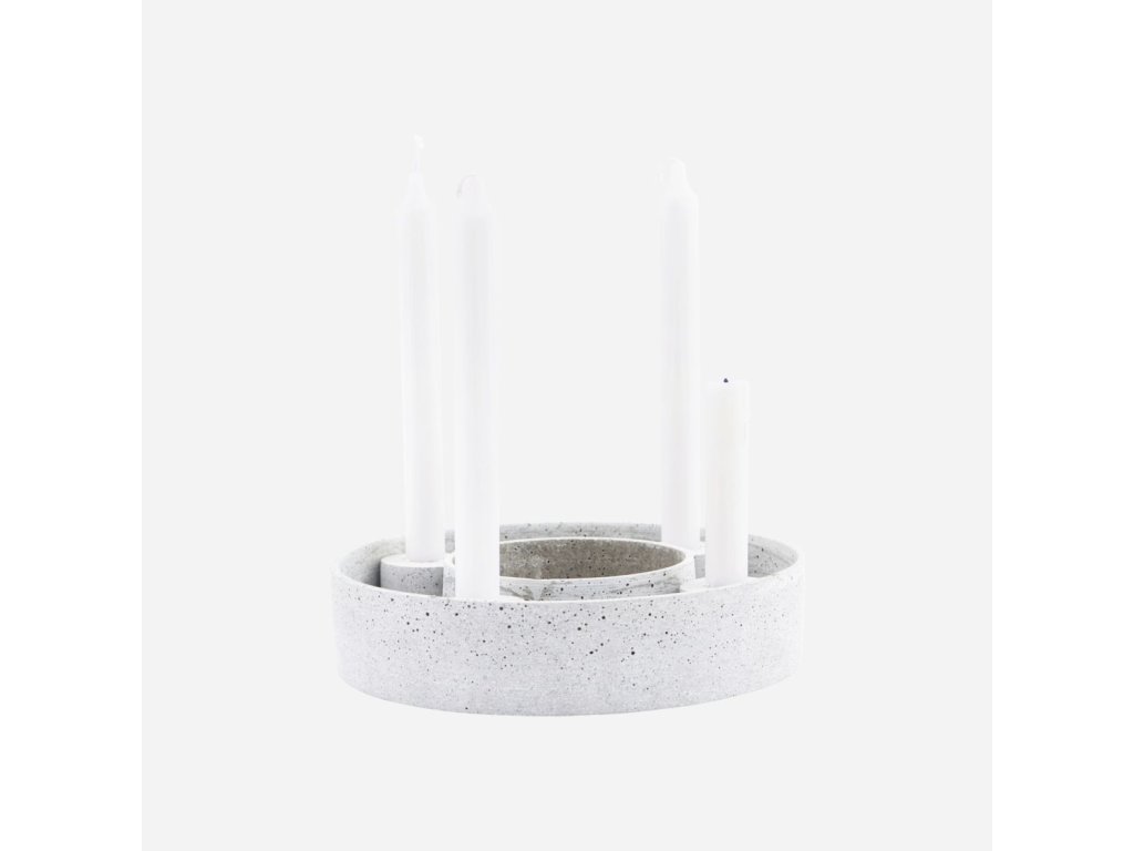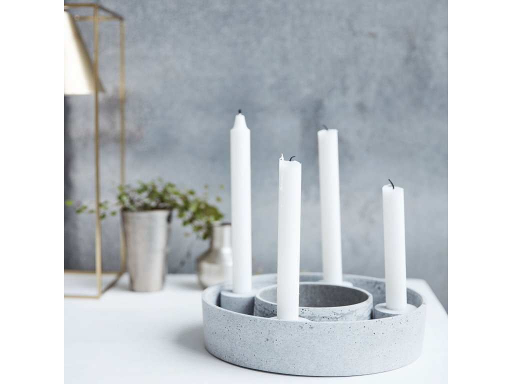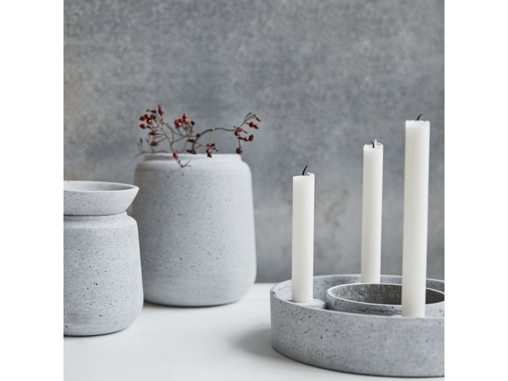 Svícny jsou nedílnou součástí každého interiéru. Během chviličky dokáží vykouzlit útulnou hygge atmosféru. Minimalistický svícen Ring z dílny House Doctor si vás získá typicky surovým betonovým odstínem. Ring je vyroben ze světle šedého polystone kamene s industriálním nádechem a je určen pro klasické svíčky o průměru cca 2,2 cm.