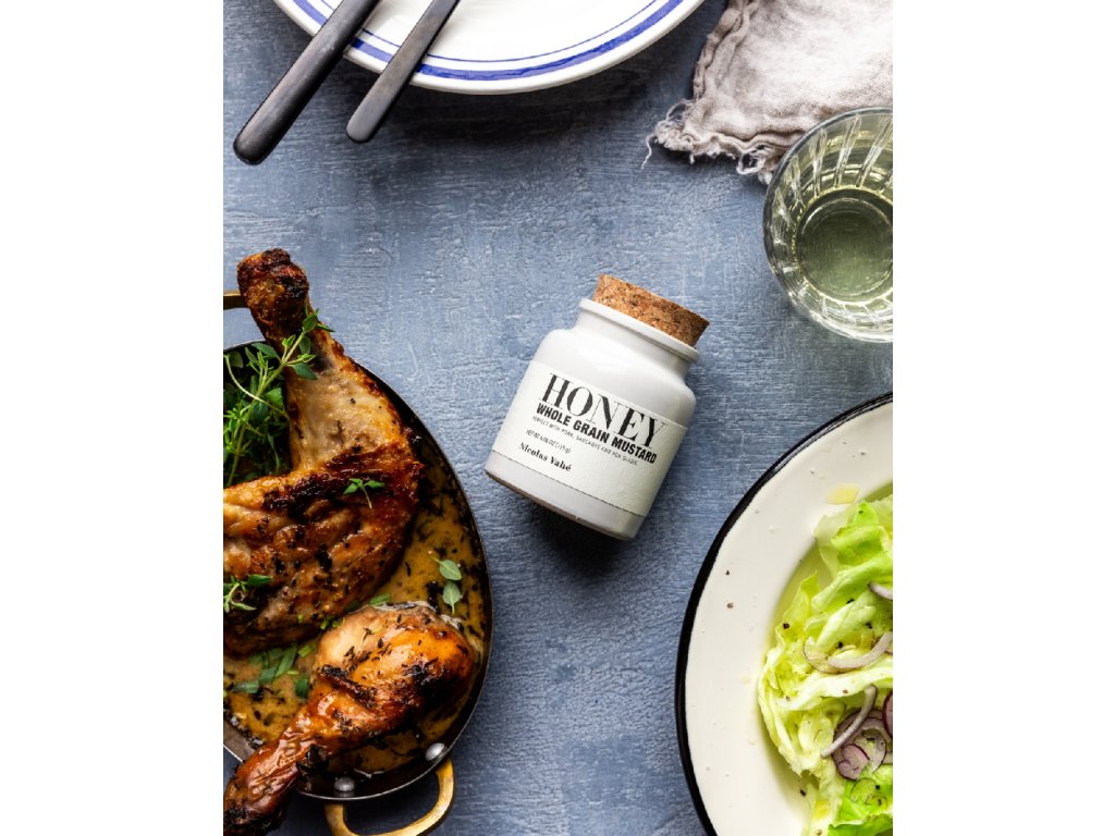 Bohatá chuť celozrnné hořčice s akátovým medem od michelinského šéfkuchaře Nicolase Vahé. Tato kombinace vytváří neodolatelnou chuť, která potěší každého gurmána. Hořčice je ideální k jehněčímu a vepřovému masu nebo klobásám, smícháním s cukrem vytvoříte lahodnou glazuru na šunku. Ideální je také jako jako hlavní surovina do marinád a salátových zálivek. Při letních večerech, kdy grilujete na zahradě či terase s přáteli a rodinou se stane opravdu nepostradatelnou.