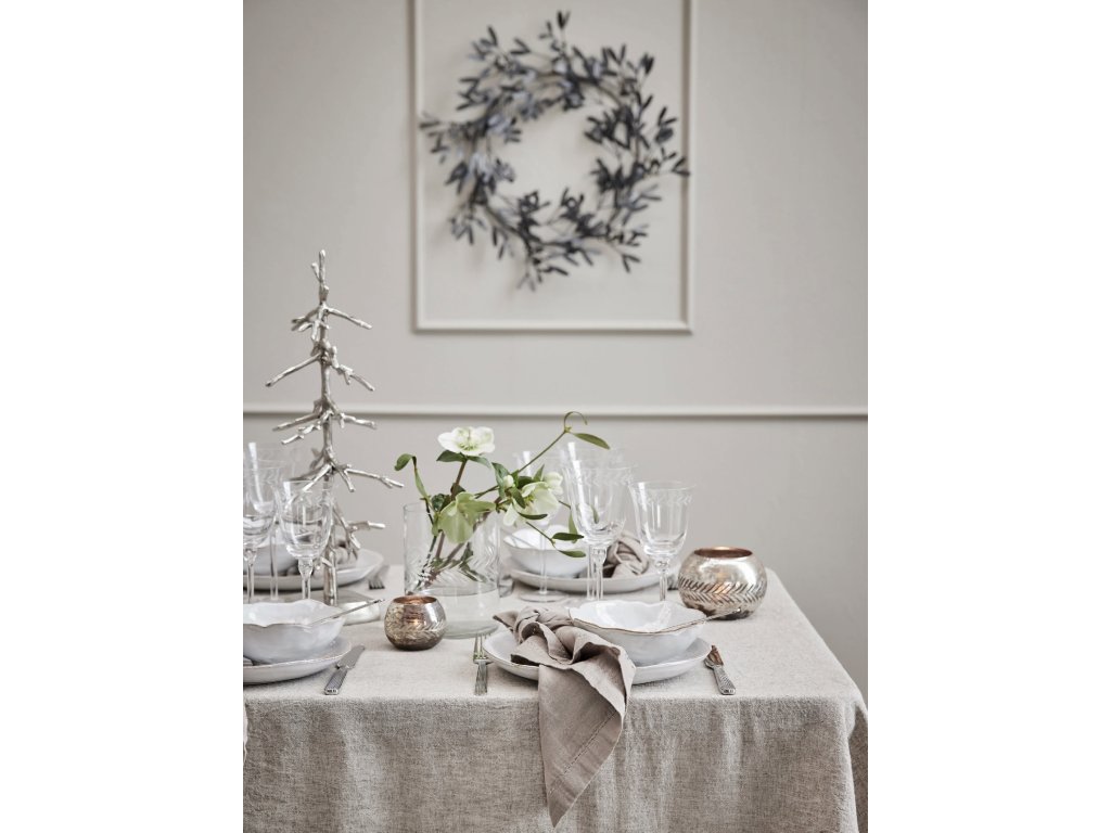 Dekorativní věnec Mistlia Mistletoe od Lene Bjerre je ztělesněním skandinávské elegance – decentní a dokonale propracovaný. Kovové větvičky s jemně tvarovanými lístky a drobnými zlatavými bobulkami připomínají jmelí v jeho nejkrásnější podobě. Každý detail je promyšlený od ručně tvarovaných lístků až po lehkou patinu, která dodává věnci autentický, lehce starobylý výraz. Povrch v odstínu antické šedé působí klidně a zároveň luxusně, takže se snadno začlení do moderních i klasických interiérů.