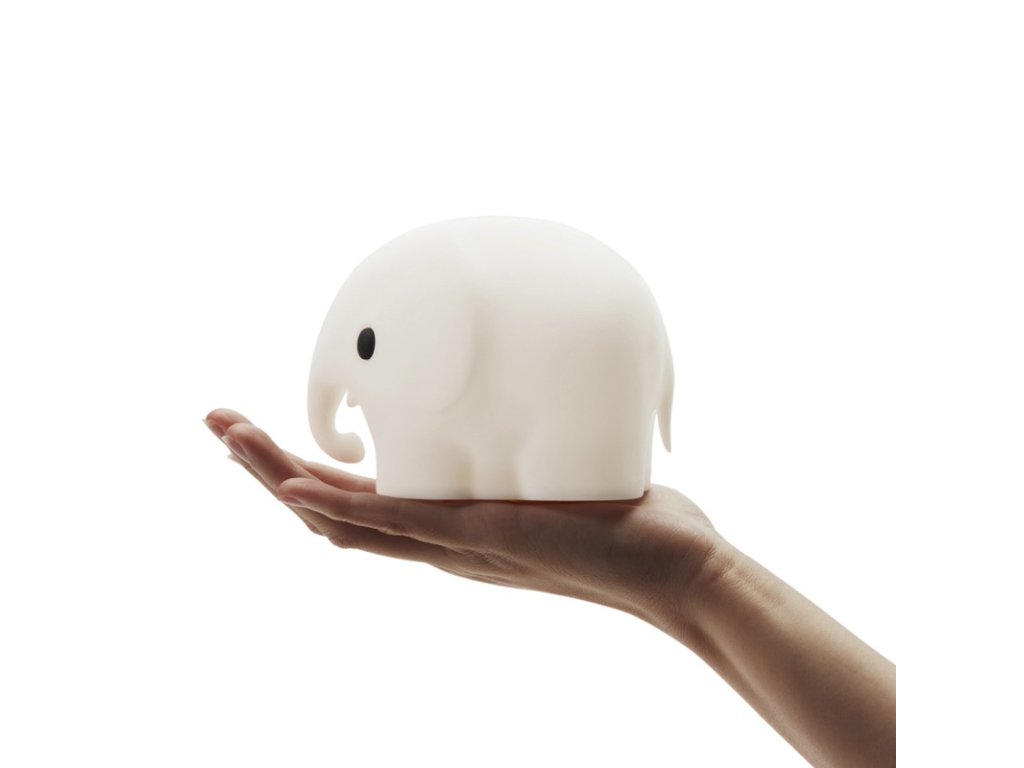 Lampička Elephant Bundle of Light je vyrobena z měkkého silikonu, který je na dotek velmi příjemný a heboučký. Dobíjí se pomocí lithiové baterie CR2032, která je součástí balení. Tato mini lampička svým malým rozměrem padne do každé dětské ručičky. Ovládá se tlačítky ON/OFF na spodní straně a má v sobě zabudovaný časovač, který se po uplynutí 15 minut sám vypne. Roztomilý slon Elephant prozáří dětský pokojíček teplým bílým světlem.