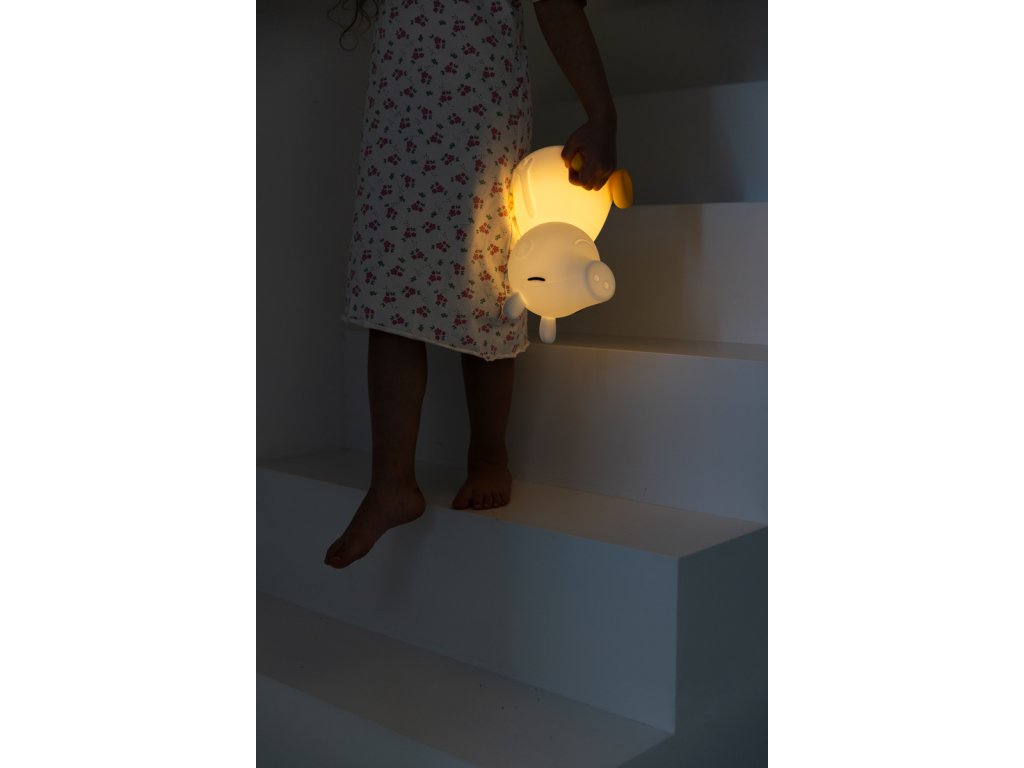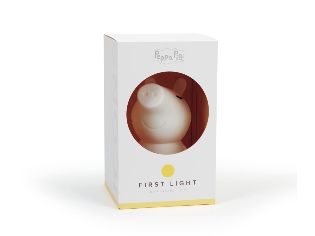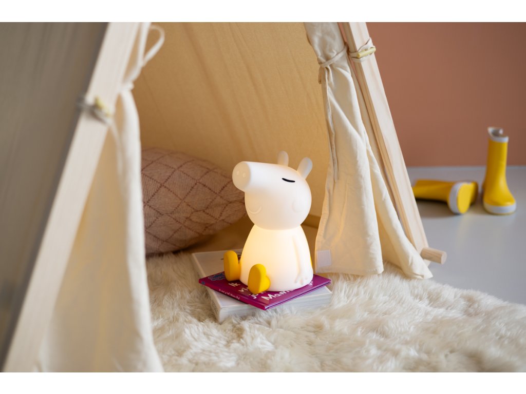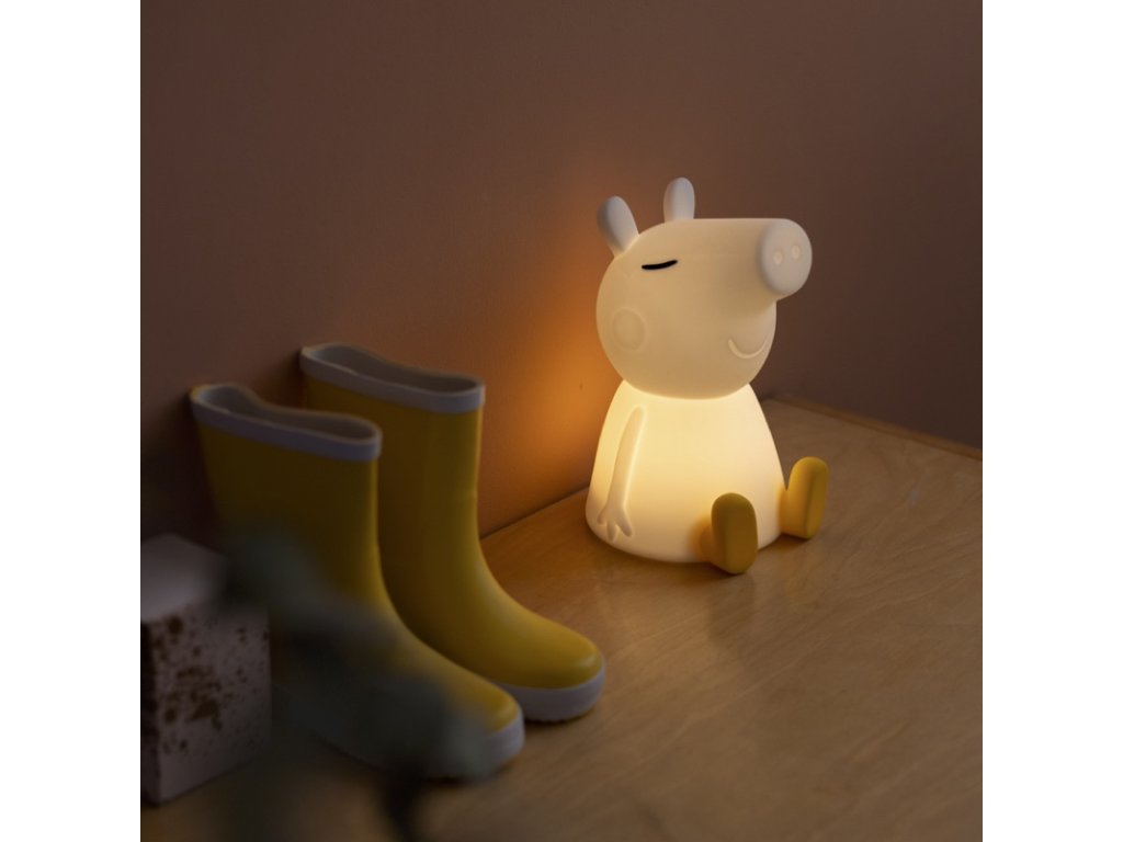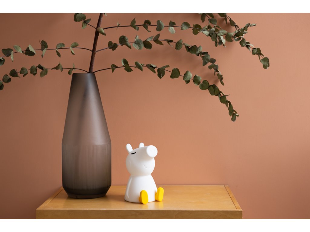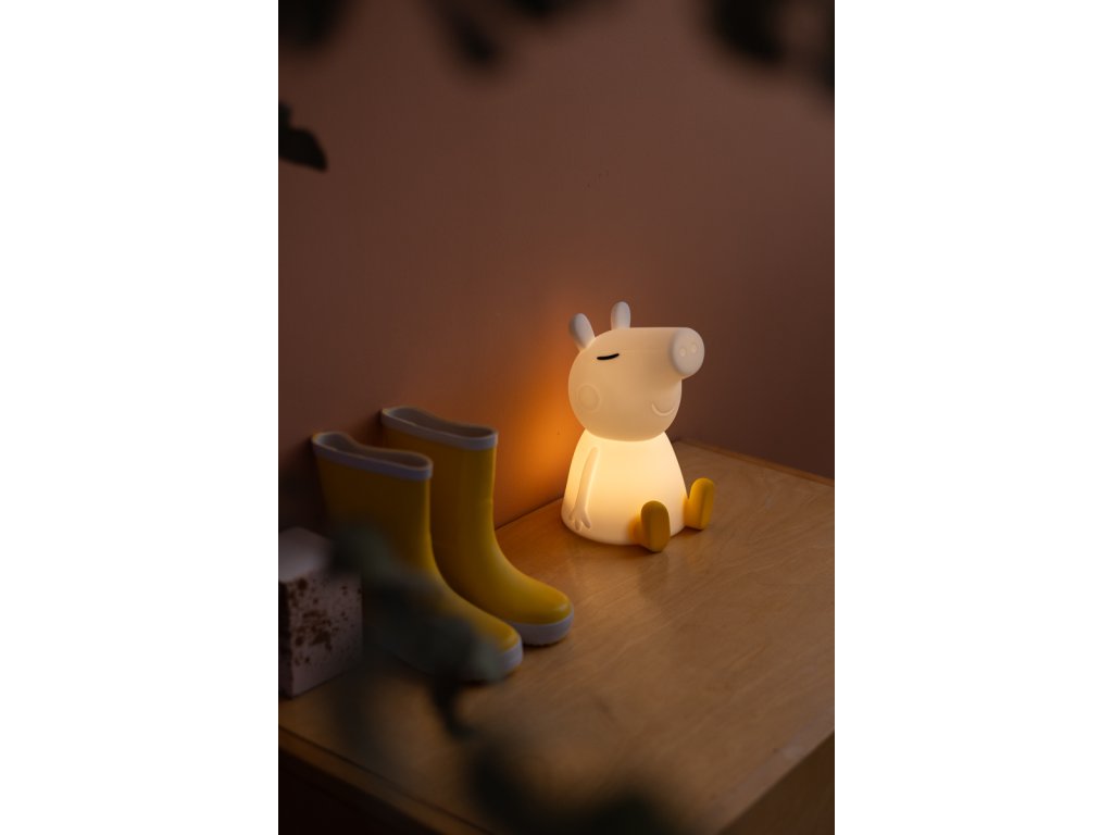 Lampička Peppa First Light je vyrobena z vysoce kvalitního, ale zároveň měkkého silikonu. Dobíjí se jednoduše pomocí kabelu USB-C, který je součástí balení. Lampička vydrží svítit 8 - 120 hodin v závislosti na zvoleném nastavení jasu. Ovládá se tlačítky ON/OFF na zadní straně, kde je umístěn také stmívač, jehož pomocí můžete nastavit 6 úrovní jasu, včetně nočního režimu. Prasátko Peppa prozáří dětský pokojíček teplým bílým světlem.