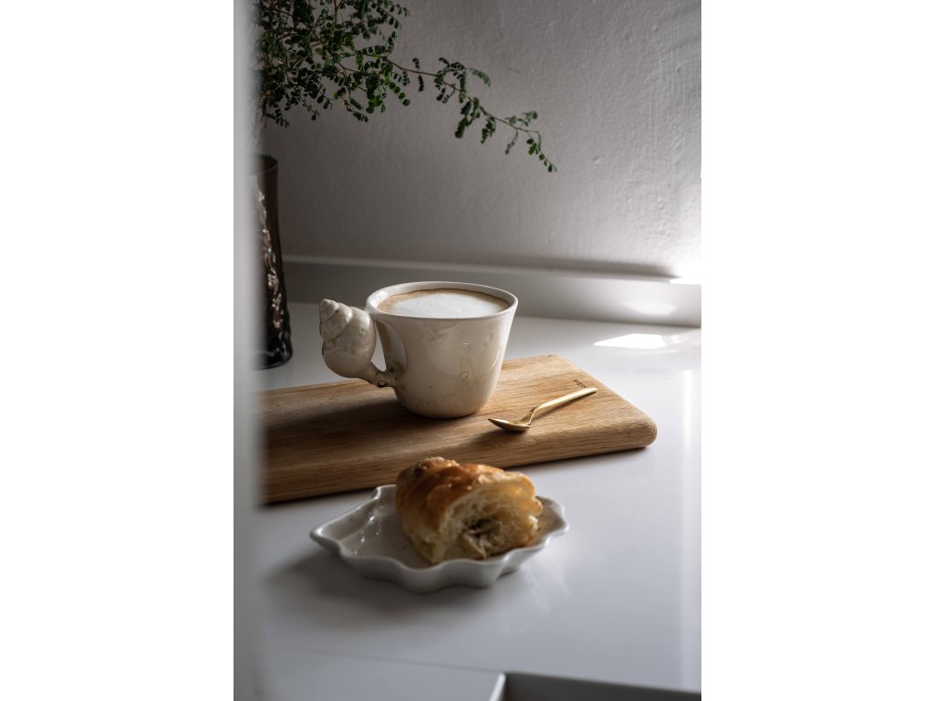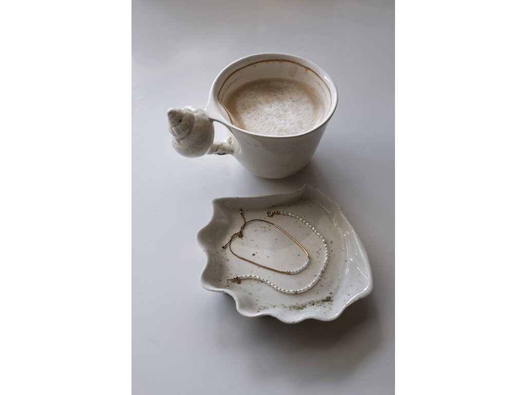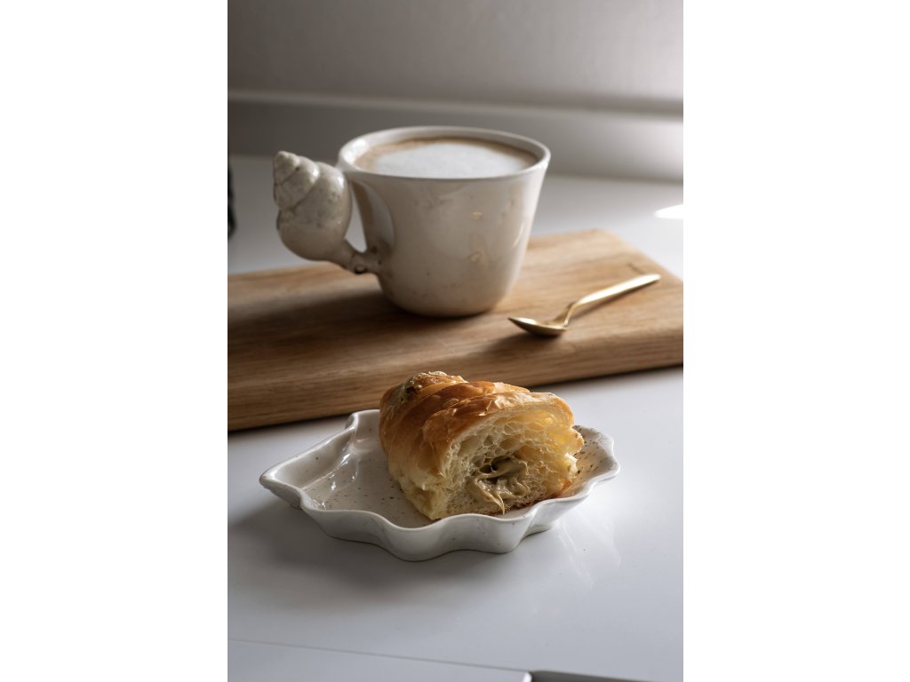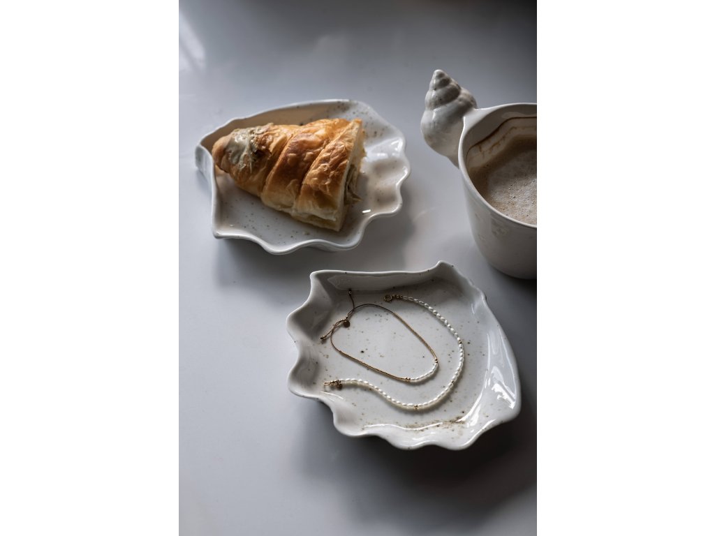 Dezertní talířek Konkylie, navržený keramičkou Dorte Kristoffersen pro Christina Iversen Studio, přináší na stůl jemnost severské přírody a tvarů inspirovaných mořem. Jeho organická silueta připomíná škebli, kterou si moře pečlivě vybrousilo po tisíce let, a přirozeně tak propojuje krásu přírody s nadčasovým designem. Talířek dokáže pozvednout i ty nejjednodušší okamžiky stolování – ranní croissant, kousek čokolády po obědě nebo drobnou přílohu k hlavnímu chodu – a proměnit je v chvíle, kdy se zastavíte a vychutnáte si detail.