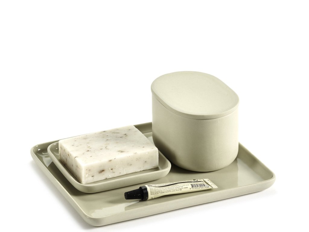 Proměňte vaši koupelnu v relaxační zónu, kde se budete cítit dobře. Za kolekcí Cose stojí sám mistr nadčasového designu Bertrand Lejoly, který svůj styl práce popisuje jako "rafinovaná jednoduchost". Důležitá je volba kvalitních a zároveň na pohled krásných doplňků, které má Serax nepřeberné množství. Řemeslné zpracování, zaoblené linie a uhlazený vzhled, dodává dóze jedinečnou minimalistickou krásu. Tento úložný box, díky svému designu, skvěle zapadne do seversky laděných koupelen. Jistě bude také stylovým a funkčním pomocníkem na kuchyňské lince u dřezu nebo v pracovně. Kombinovat můžete s produkty ze stejnojmenné série Cose.