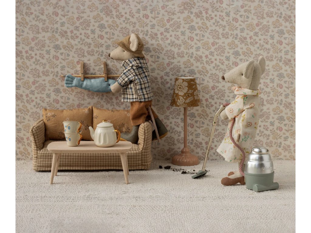 Skvěle se hodí před pohovku nebo křesílka Maileg, kde na něj myšky rády postaví konvičku s čajem, hrníčky a talířek s drobným zákuskem. Díky své univerzální velikosti však může posloužit i jako místo pro hraní deskových her, skládání pohádkových puzzlí nebo vystavení malých pokladů z cest. Každý detail je promyšlený do poslední křivky, takže stolek působí přirozeně, ale zároveň stylově, přesně tak, jak to mají myšky rády.