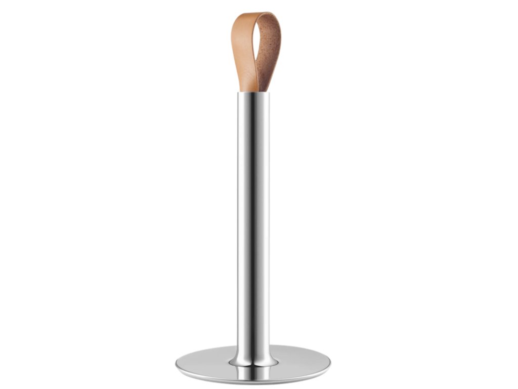 Stylový držák kuchyňských utěrek od dánské značky EVA SOLO v sobě spojuje estetickou a funkční stránku. Dokonalou stabilitu zaručí těžší základna, pogumovaný povrch základny zase zabezpečí stojan proti posunu a poškrábání pracovní desky. Snadné přesouvání stojanu umožňuje široké kožené poutko. Díky tomuto designovému stojanu budete skladovat kuchyňské utěrky atraktivním způsobem.