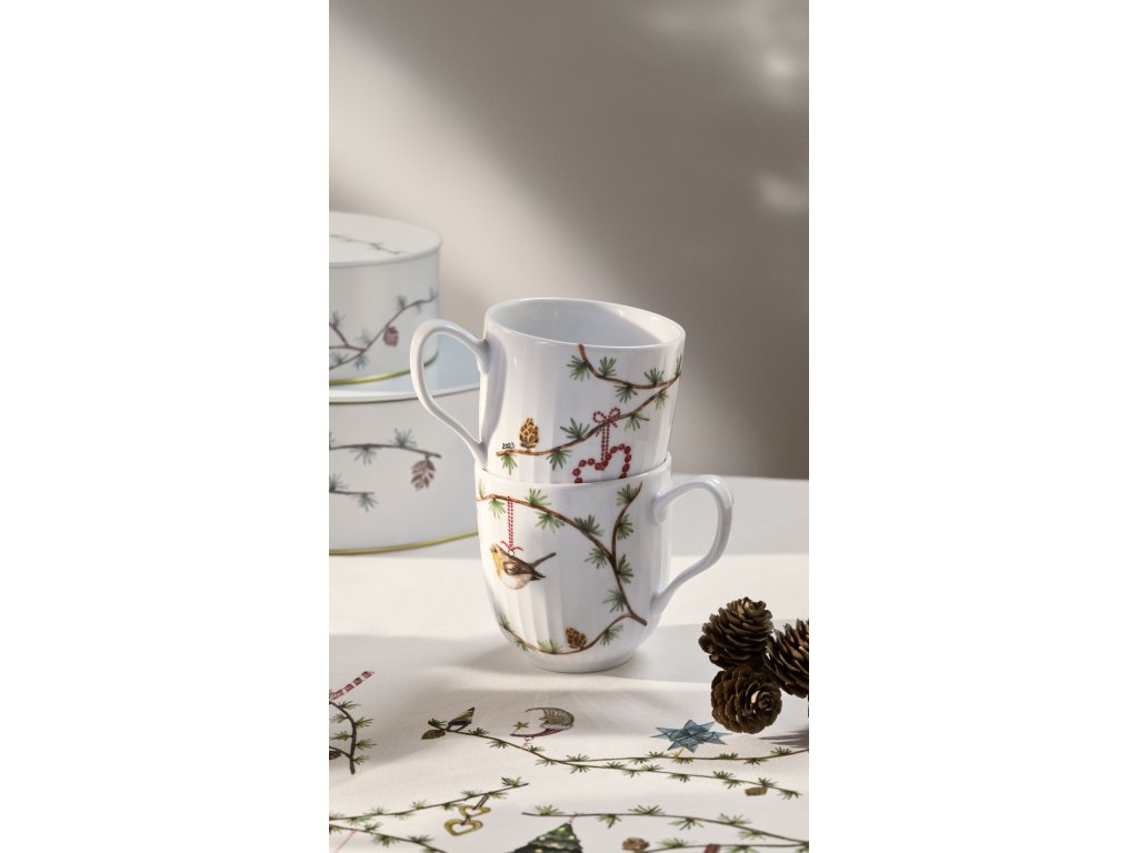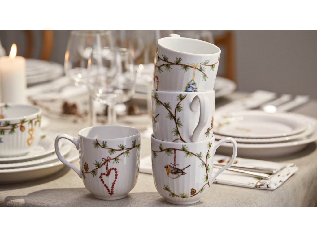 Kolekce Hammershøi Christmas od Kähler se stala velmi oblíbenou pro své typické jemné rýhování, za kterým stojí norský designér Hans-Christian Bauer. Nádherné ilustrace zobrazující skandinávské vánoční tradice pak navrhla umělkyně Rikke Jacobsen. Vedle kouzelných váz a svícnů zde také objevíte nádherný jídelní set, se kterým bude radost připravovat hostinu pro nejbližší přátele nebo rodinu. Nádherný hrnek z kolekce Hammershøi Christmas dodá vašemu domovu tu pravou skandinávskou eleganci. Kolekci pro rok 2023 zdobí všudypřítomné cedrové větvičky, červené srdce z bobulek, ozdoba vánočního stromku na zlatém provázku a roztomilý ptáček. Uvnitř pak najdete sněhuláka s malým červeným srdíčkem. Hrnek je velmi elegantním a nadčasovým kouskem, jež bude o Vánocích ozdobou každé kuchyně či jídelního stolu.