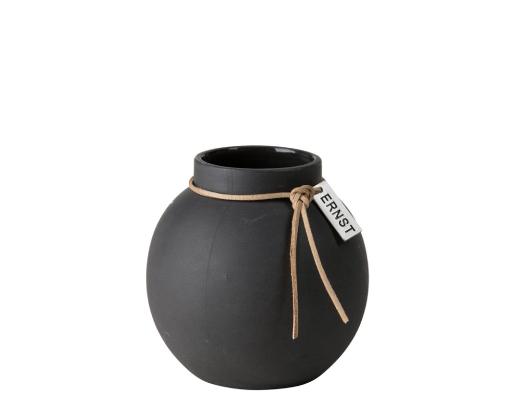 Kameninová váza od švédské značky ERNST vnese do vašeho domova rustikální nádech. Tomuto nádhernému kousku, který má kolem hrdla stylovou koženou šňůrku s kovovým plíškem s nápisem ERNST, bude slušet čerstvě utržené luční kvítí, obilné klasy i suché větvičky. Váza ale bude také pěknou dekorací i sama o sobě.