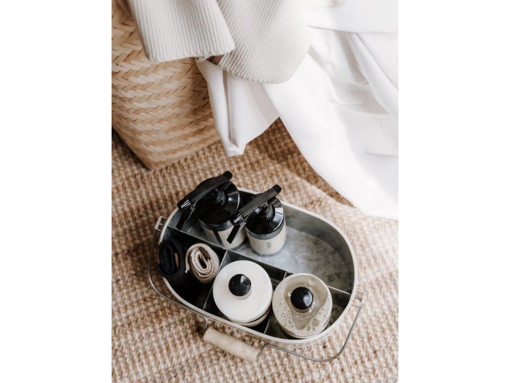 Kbelík má čtyři promyšleně rozdělené přihrádky – tři menší a jednu větší – díky kterým snadno zorganizujete lahve s prostředky, kartáče i utěrky. Skvěle ale poslouží také v kuchyni na bylinky, v dětském pokoji na drobné hračky nebo jako originální piknikový koš – stačí přidat limonádu, něco malého na zub a můžete vyrazit. Je vyroben z odolného zinku, který zajišťuje dlouhou životnost i snadnou údržbu. Kovová konstrukce je doplněna dřevěnou rukojetí pro pohodlné přenášení, ať už jste zrovna v pohybu doma nebo na cestách.