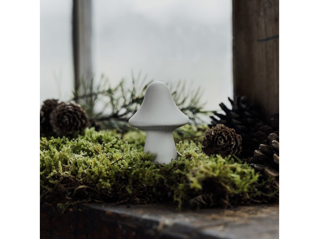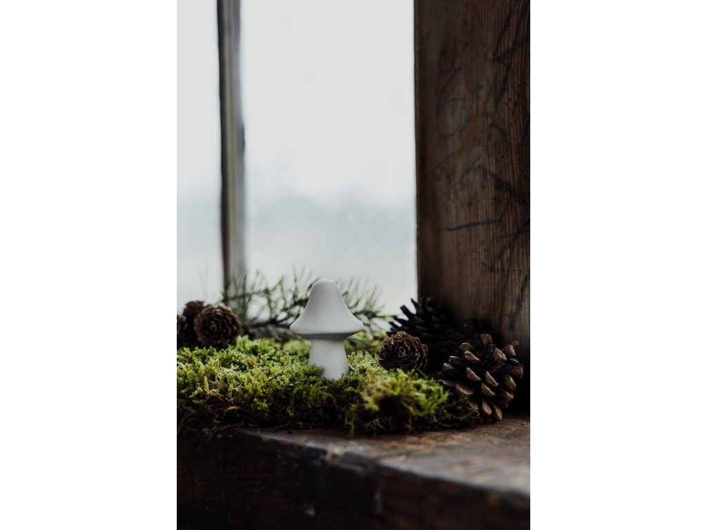 Keramická houbička Bosten od švédské značky Storefactory Scandinavia působí jemně a přirozeně, jako by si z lesa přinesla kousek podzimní atmosféry přímo k vám domů. Celá houbička je vyrobena z neglazované keramiky v bílém tónu, což jí dodává přirozený matný vzhled a dělá z ní drobný, ale výrazný detail, který si okamžitě získá pozornost.