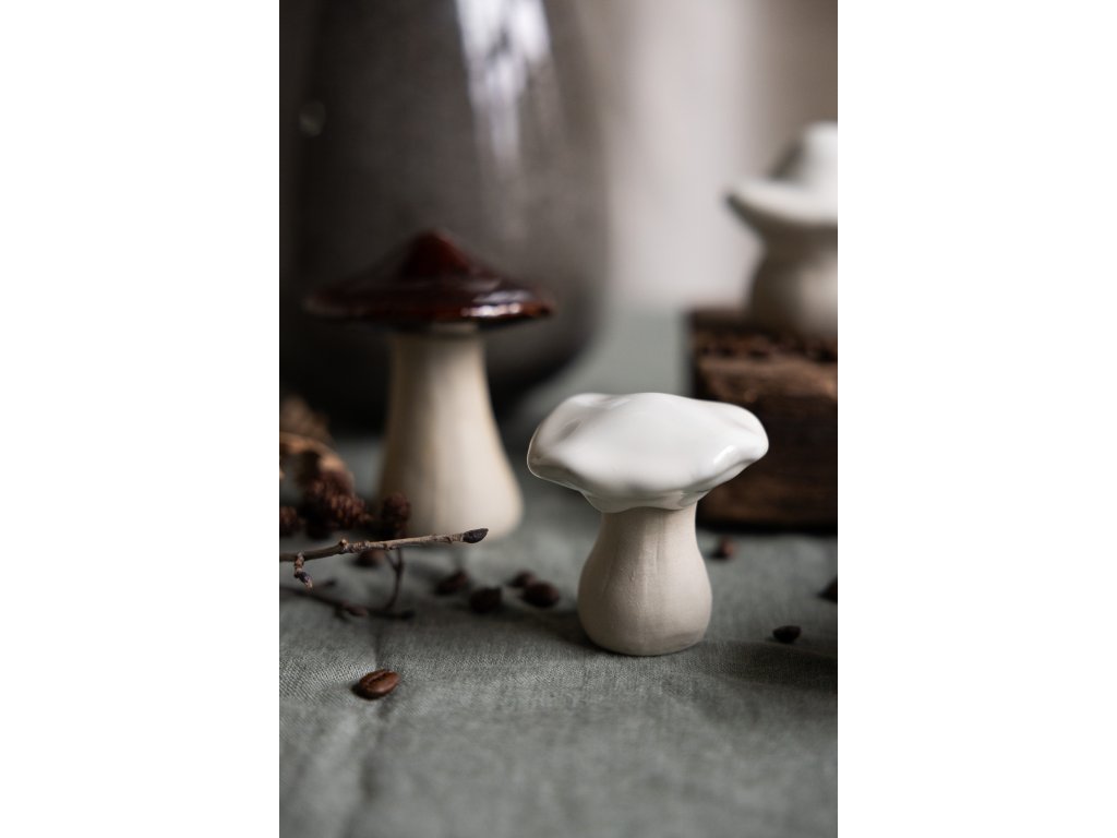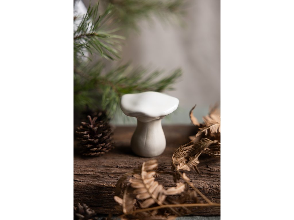 Keramický hříbek Skogsryd od Storefactory Scandinavia v sobě spojuje kouzlo lesa a čistotu severského designu. Světle béžová nožka z matné keramiky působí jemně a přirozeně, zatímco leskle glazovaný klobouček dodává dekoraci výrazný kontrast a elegantní akcent. Díky tomuto spojení vzniká originální detail, který okamžitě vnese do domova hřejivou podzimní atmosféru.