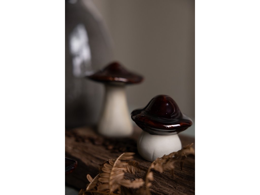 Keramický hříbek Skogstorp od Storefactory Scandinavia v sobě spojuje kouzlo lesa a čistotu severského designu. Světle béžová nožka z matné keramiky působí jemně a přirozeně, zatímco leskle glazovaný klobouček dodává dekoraci výrazný kontrast a elegantní akcent. Díky tomuto spojení vzniká originální detail, který okamžitě vnese do domova hřejivou podzimní atmosféru.
