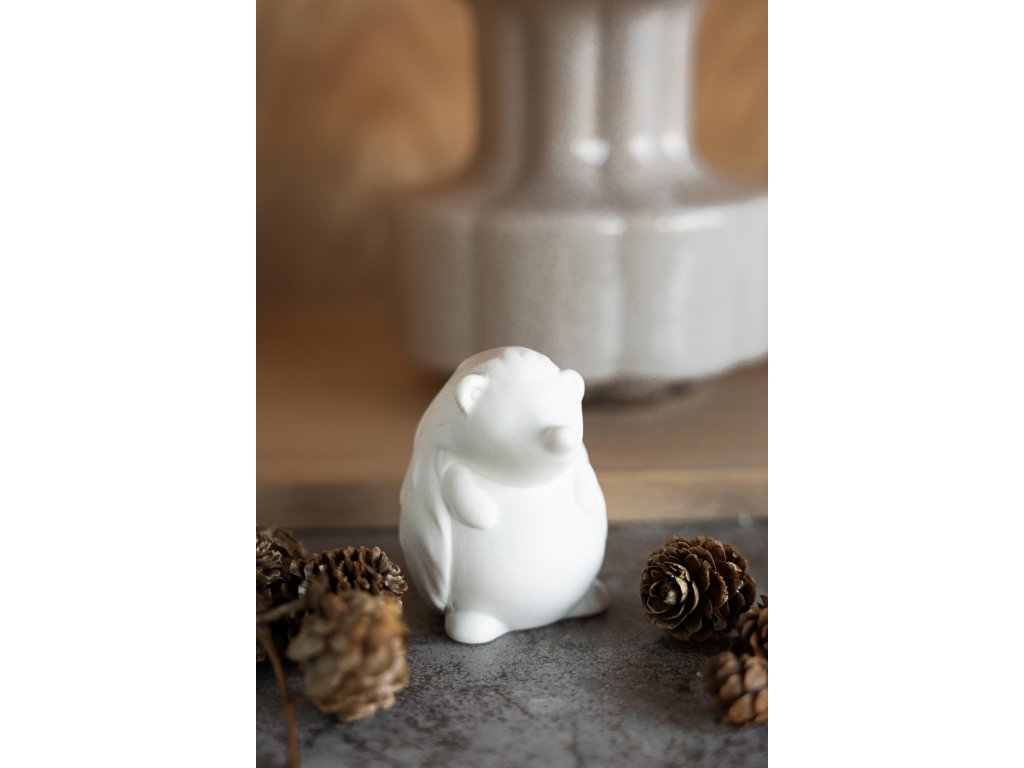 Keramický ježek Rufus je roztomilým společníkem, který vnese do vašeho interiéru hravost i kousek přírody. Jeho jemně modelované tvary a milý výraz působí mile a přátelsky, takže si okamžitě získá své místo na poličce, okenním parapetu nebo mezi sezónní výzdobou.