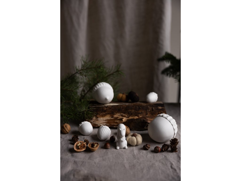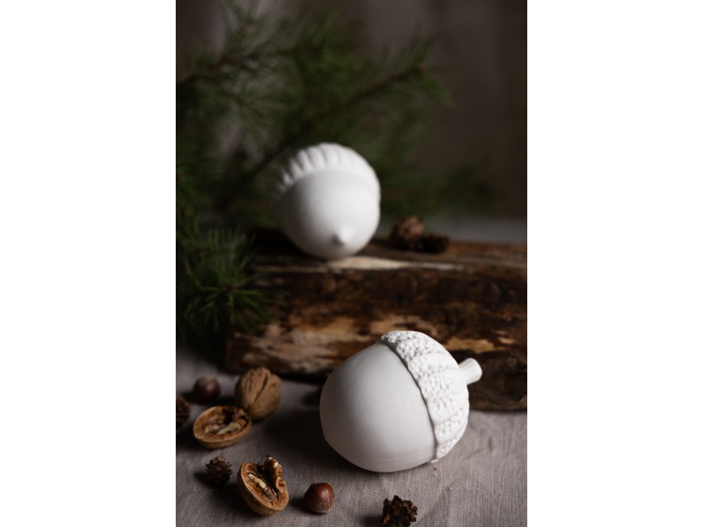 Dekorace Sjövik ve tvaru žaludu je vyrobená z neglazované keramiky ve sněhově bílém provedení. Dekorace kombinuje jednoduchý vzhled s esteticky přitažlivým designem, který oživí každý prostor v domě. S žaludem Sjövik vytvoříte během chvilky působivé sezónní aranžmá, ať už na podnose s dalšími přírodninami, nebo v ikonickém svícnu Lidatorp. Můžete jich kombinovat hned několik nebo přidat dýně a další keramické kousky značky. Touto dekorací hravě oživíte jakoukoliv místnost, kde budete chtít šířit hřejivou podzimní atmosféru.