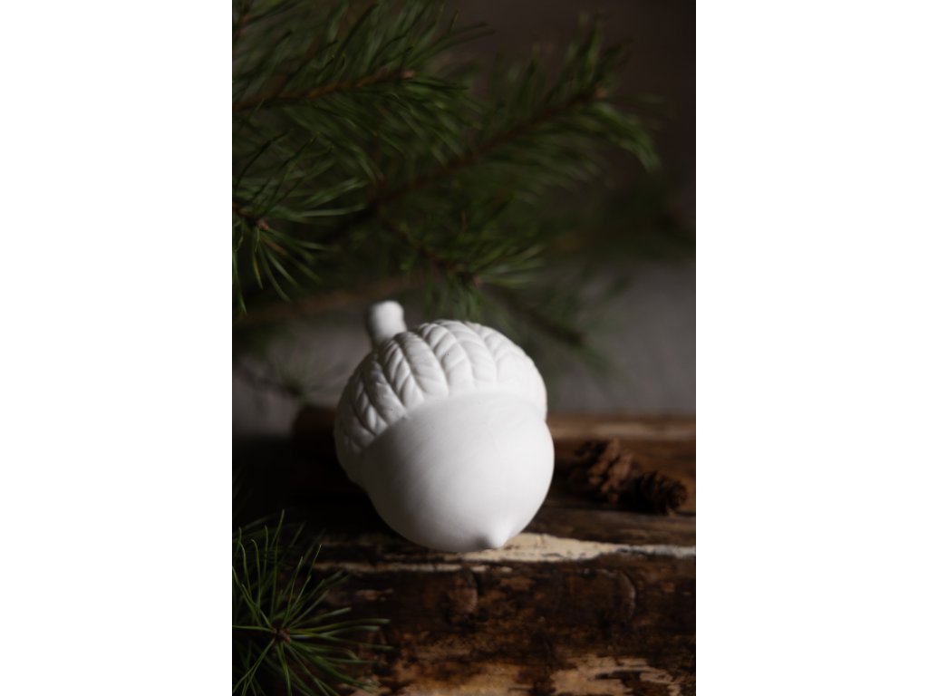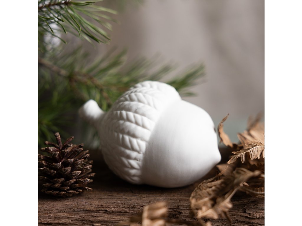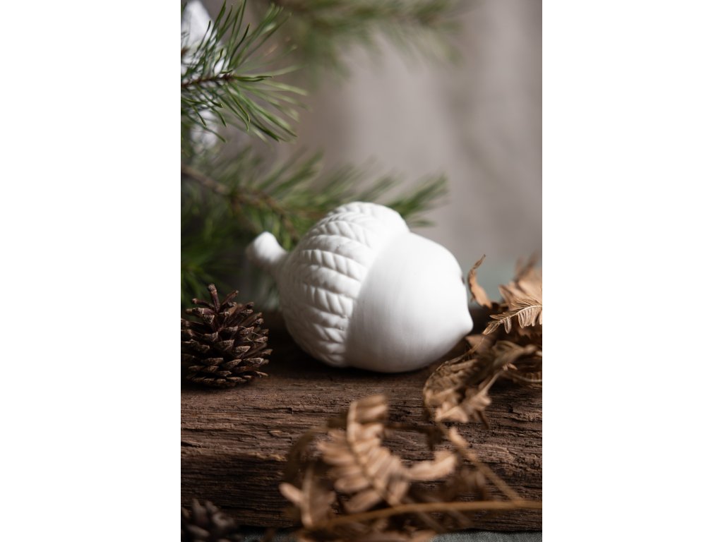 Dekorace Västansjö ve tvaru žaludu je vyrobená z neglazované keramiky ve sněhově bílém provedení. Dekorace kombinuje jednoduchý vzhled s esteticky přitažlivým designem, který oživí každý prostor v domě. S žaludem Västansjö vytvoříte během chvilky působivé sezónní aranžmá, ať už na podnose s dalšími přírodninami, nebo v ikonickém svícnu Lidatorp. Můžete jich kombinovat hned několik nebo přidat dýně a další keramické kousky značky. Touto dekorací hravě oživíte jakoukoliv místnost, kde budete chtít šířit hřejivou podzimní atmosféru.