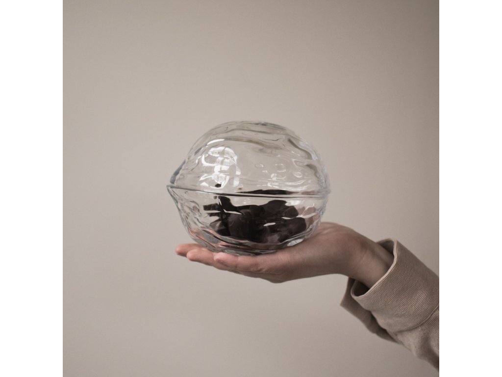Skleněná dóza Walnut Bowl švédské značky DBKD je dokonalým spojením tradičního a moderního designu. Dóza svým tvarem připomíná vlašský ořech, který je bezpochyby spjatý s kouzelným vánočním obdobím. Dóza je ideální pro skladování všech cukrovinek, čokoládových pralinek, lahodných medových perníčků a dalšího drobného cukroví.