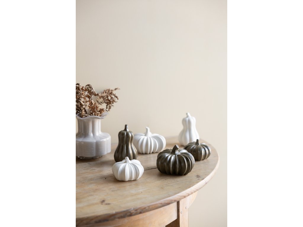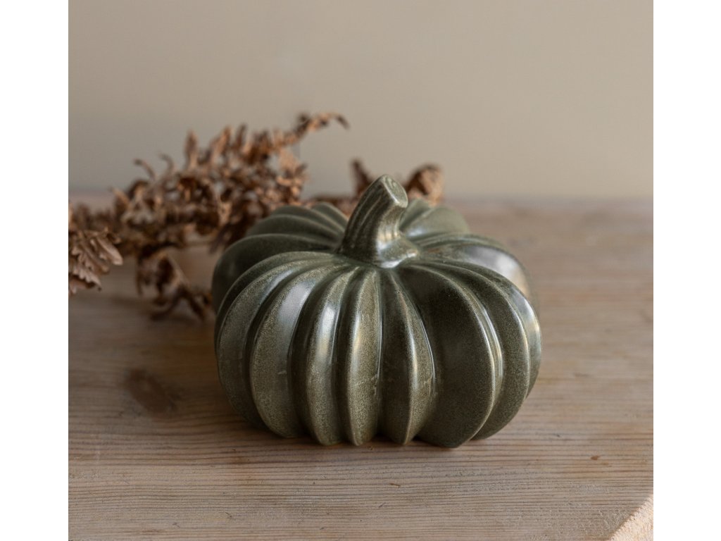 Keramická dýně Hovsjö je drobná dekorace, která dokáže okamžitě navodit útulnou podzimní atmosféru. Lesklá glazura v decentním zeleném odstínu jí dodává hloubku a krásně odráží světlo, takže působí živě a elegantně zároveň.