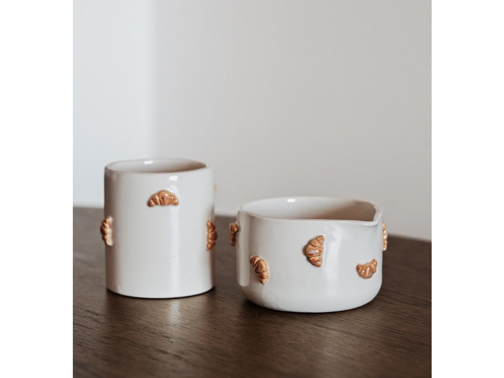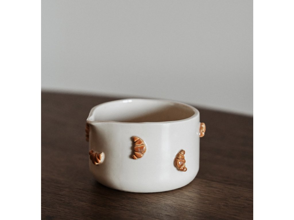 Vyrobená je z odolné kameniny s lesklou glazurou a bez obav zvládne i každodenní používání. Doporučujeme ruční mytí, které pomůže zachovat krásu glazury i croissantů. Protože je každý kus ručně tvořený originál, mohou se tvarem či barevným odstínem jemně lišit – právě v těchto detailech se skrývá její jedinečné kouzlo.