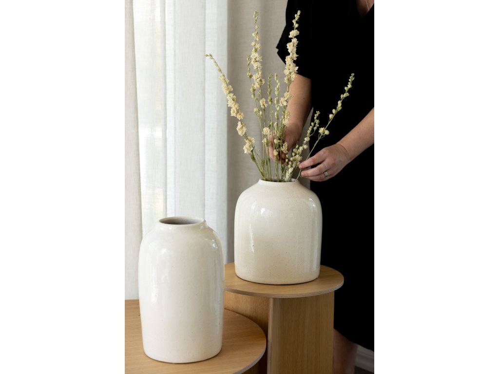 Keramická váza Domsjö od švédské značky Storefactory Scandinavia je dokonalým mixem mezi tradičním řemeslem a nadčasovým designem. Váza Domsjö je ručně vyrobená v Portugalsku a na první pohled upoutá glazovaným povrchem v jemně přírodním tónu. Tento designový kousek bude zcela jistě dominantní dekorací vašeho domova. Vhodné je umístění jak na podlahu, tak na komodu nebo doprostřed jídelního stolu. Vypadá skvěle ozdobená sušenými větvičkami nebo květinami.
