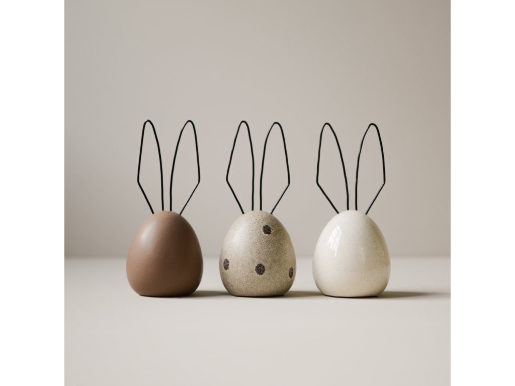 Velikonoční vajíčko s kovovými oušky od značky DBKD je přesně ten typ dekorace, který vám doma vykouzlí úsměv pokaždé, když kolem něj projdete. Keramické tělo má výšku 18 cm a doplňují ho kovová ouška, díky kterým působí vajíčko velmi vesele. Povrch keramiky je matně glazovaný.