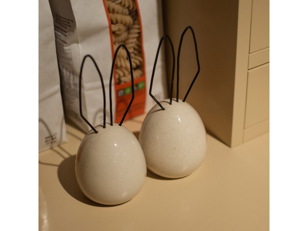 Velikonoční vajíčko s kovovými oušky od značky DBKD je přesně ten typ dekorace, který vám doma vykouzlí úsměv pokaždé, když kolem něj projdete. Keramické tělo má výšku 18 cm a doplňují ho kovová ouška, díky kterým působí vajíčko velmi vesele. Povrch keramiky je leskle glazovaný.
