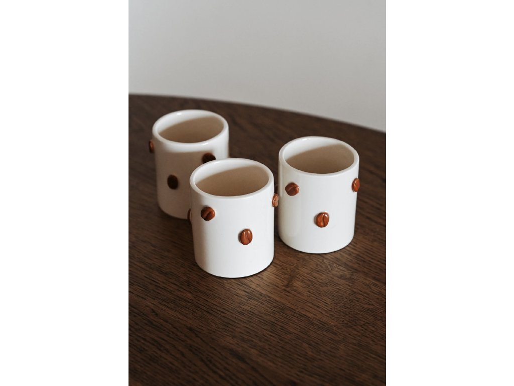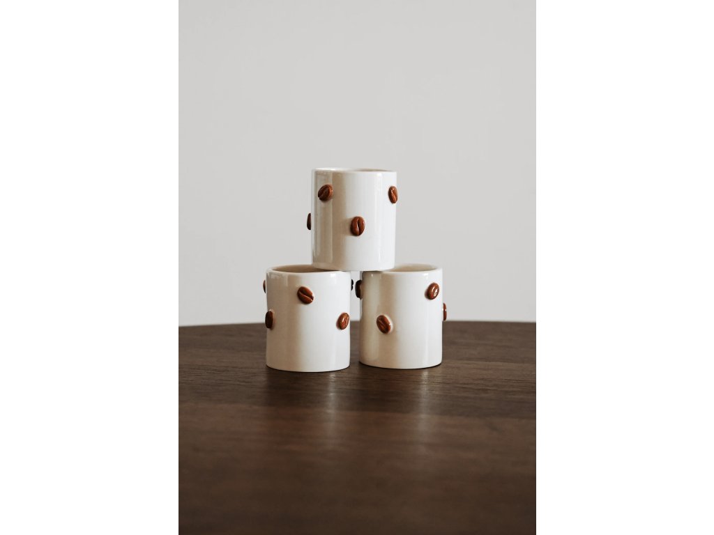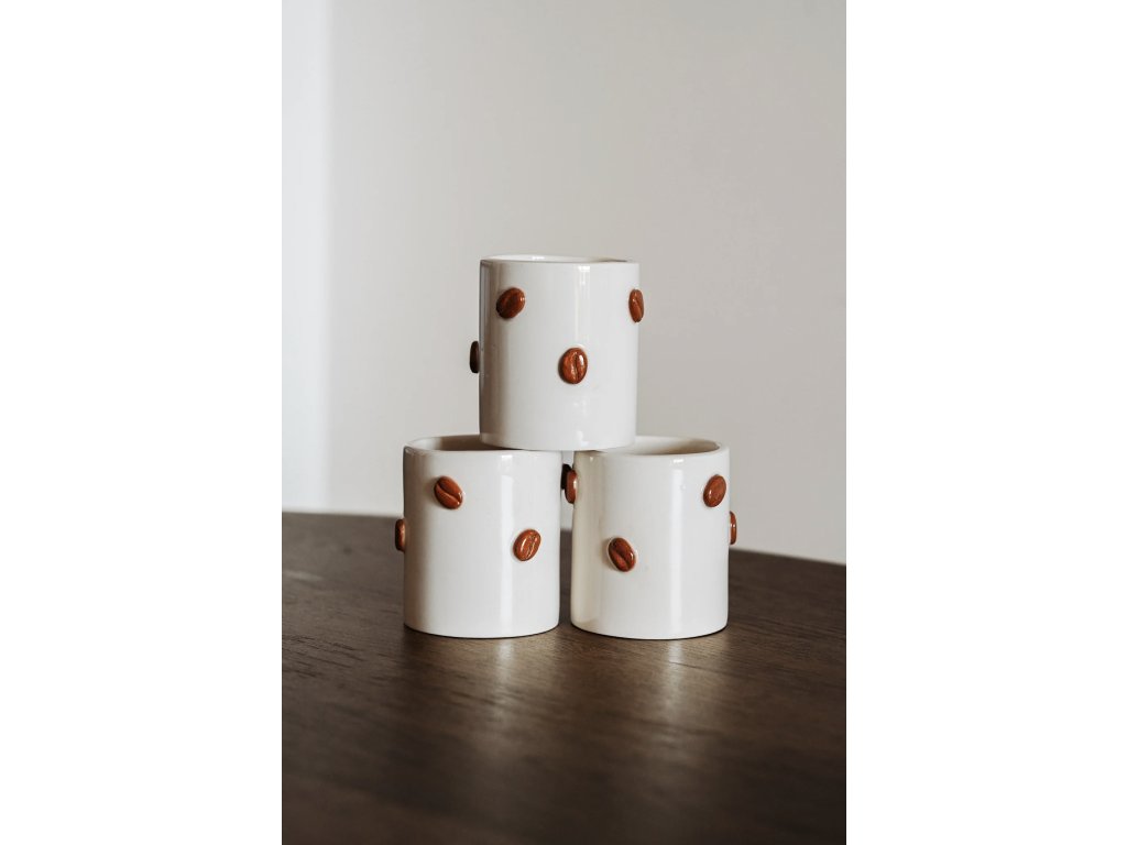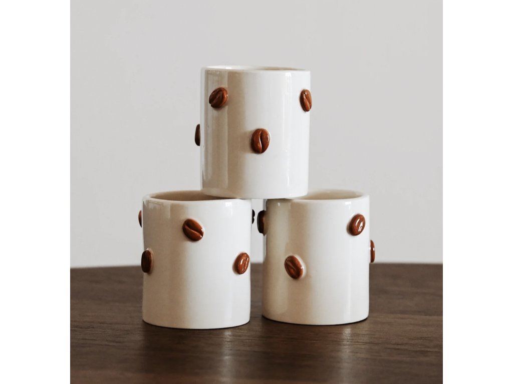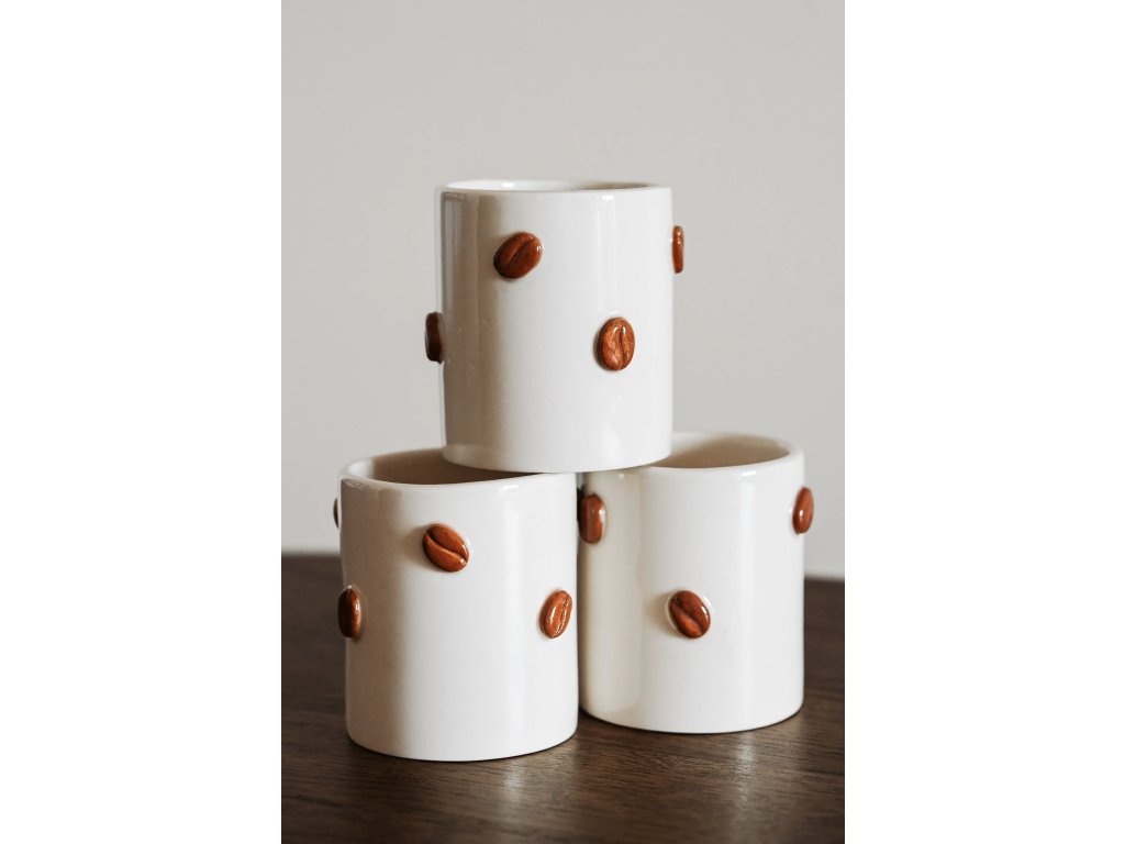 Keramický hrnek Coffee Beans zdobí plastická kávová zrnka připomínající okamžik, kdy se kuchyní rozline vůně čerstvě namleté kávy. Jako by vás zval k tomu, abyste se zastavili, nadechli se a užili si svůj malý každodenní rituál.