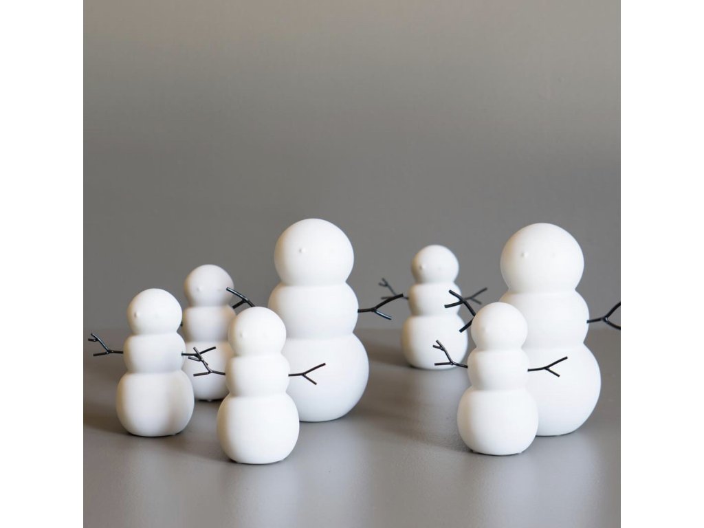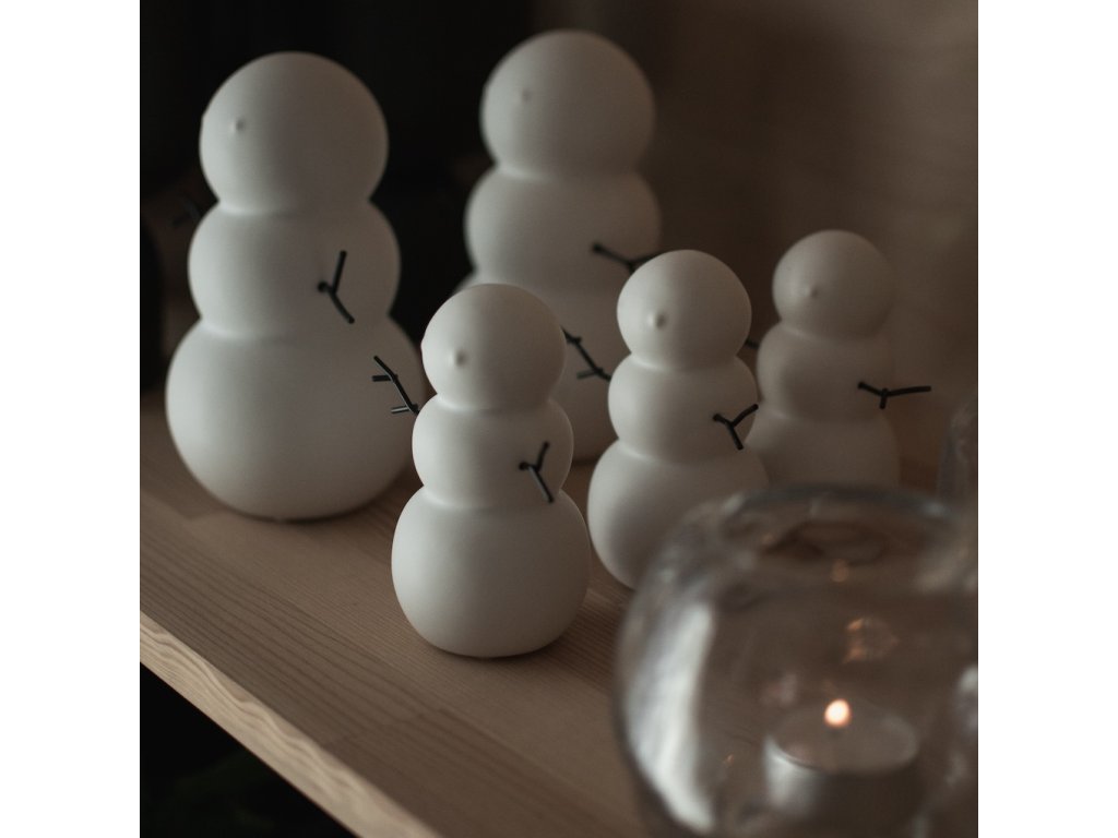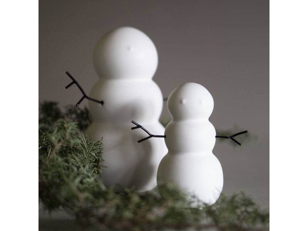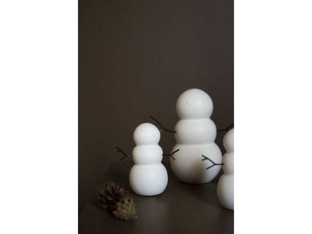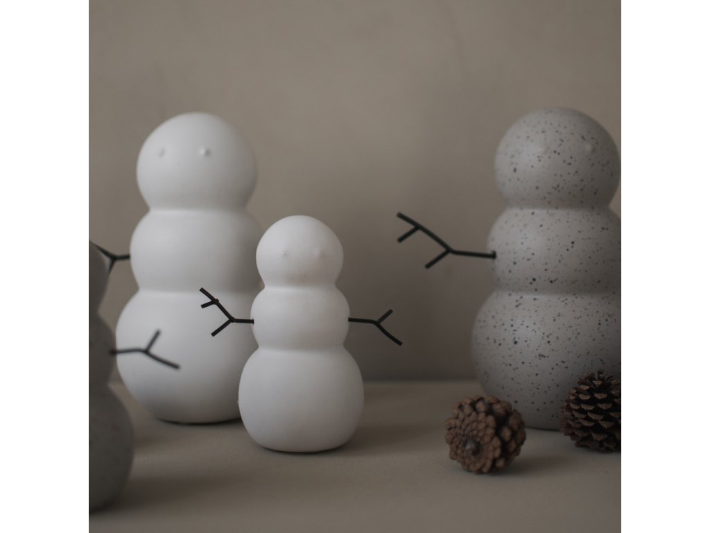 Sněhulák je vyroben ze sněhově bílé keramiky, pokryté glazurou s jemným matným finišem. Černé kovové ruce připomínají větvičky a dodávají sošce jedinečný vzhled. Najděte jí místo na poličce, komodě, konferenčním stolku nebo uprostřed prostřeného stolu, kde přispěje k vytvoření té pravé zimní atmosféry.