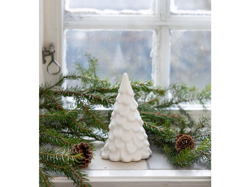 Keramický stromeček Norrskog od švédské značky Storefactory Scandinavia je působivou dekorací, která vnese do vašeho domova kouzlo skandinávské zimy. Je vyroben z neglazované keramiky v čistě bílém provedení, díky čemuž působí jemně a minimalisticky. Struktura větviček vytváří na stromečku zajímavou hru světla a stínu, takže vypadá krásně nejen ve dne, ale i při svitu svíček.