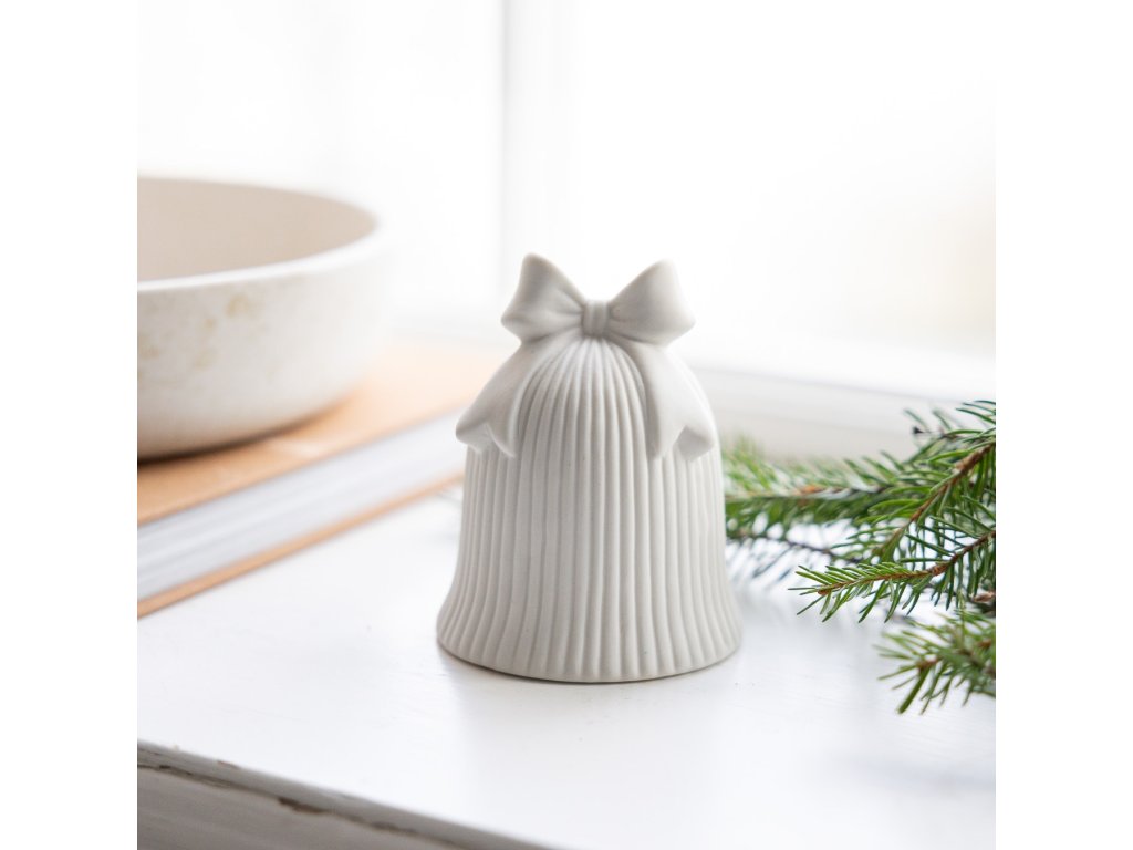 Keramický zvoneček Klocksjön od švédské značky Storefactory Scandinavia vnese do vašeho domova jemnou eleganci a kouzlo Vánoc. Vyrobený z matné keramiky v čistě bílé barvě působí jemně a elegantně. Jeho zvonkový tvar zdobí jemné svislé rýhování a nahoře je korunován krásnou mašlí, která mu dodává hravý i slavnostní vzhled.