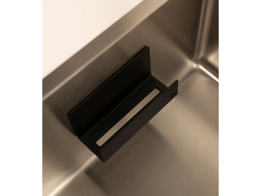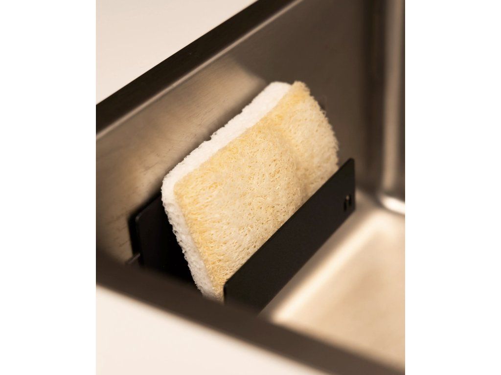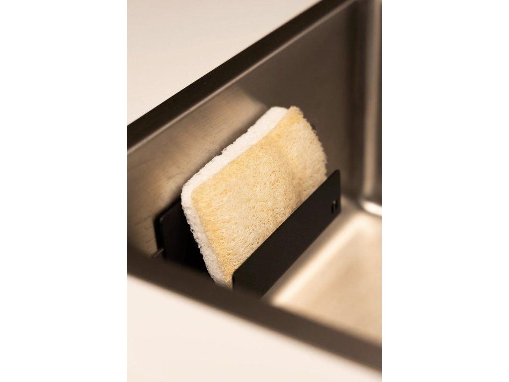 Uvnitř vytvoří místo pro jednu až dvě houbičky nebo menší hadřík. Díky otevřené konstrukci a odtokovému kanálku voda odtéká a houbička rychleji vysychá, což pomáhá omezit vzniku zápachu. Držák umístíte přímo do dřezu na jeho vnitřní stěnu, takže nezabírá místo na pracovní desce. Hodí se ale i na stěnu vedle baterie, kde zůstává po ruce a nepřekáží při mytí nádobí.