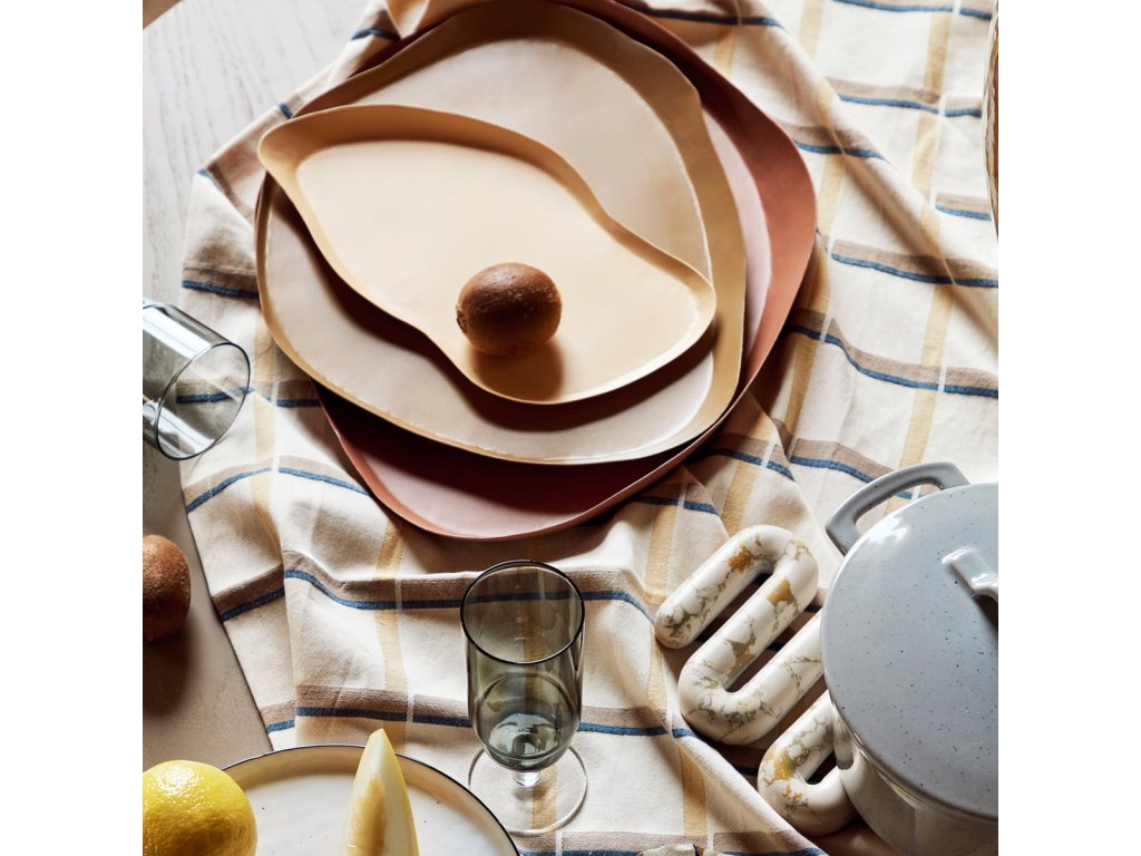 Vneste do svého interiéru teplé tóny a nadčasovou eleganci s podnosem Mie v odstínu Cinnamon Sand od Broste Copenhagen. Tento kovový podnos střední velikosti spojuje minimalistický design s jemně organickým tvarem, který připomíná přírodní linie. Polomatný povrch dodává sofistikovaný vzhled, zatímco jemně zvlněné okraje podtrhují jeho ležérní eleganci.