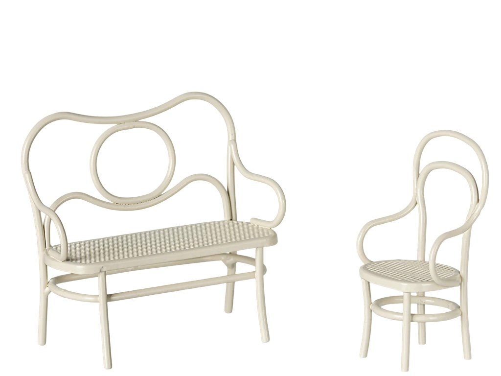 Židlička poskytuje extra místo pro myšku, která se ráda usadí trochu pohodlněji, zatímco lavice je ideální pro dvě malé myší dušičky. Ať už se tu myšky sejdou na romantickou večeři při svíčkách nebo na odpolední čaj, vždy budou mít ten nejpohodlnější kout k posezení.