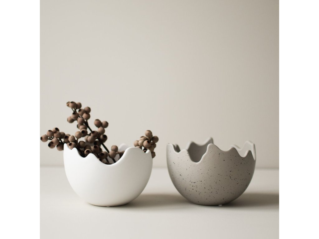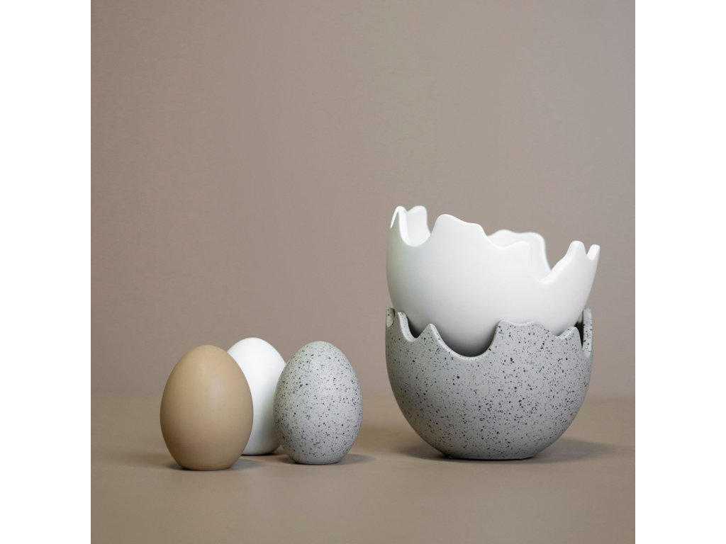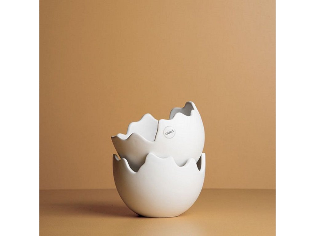 Miska Happy Easter je dekorativní kousek z dílny švédské značky DBKD, který si pohrává s velikonoční symbolikou v moderním pojetí. Je vyrobená z keramiky v bílé barvě s matným povrchem, který podtrhuje její sochařský výraz. Nepravidelný, zvlněný okraj připomíná prasklou skořápku a dodává celému tvaru hravý charakter.