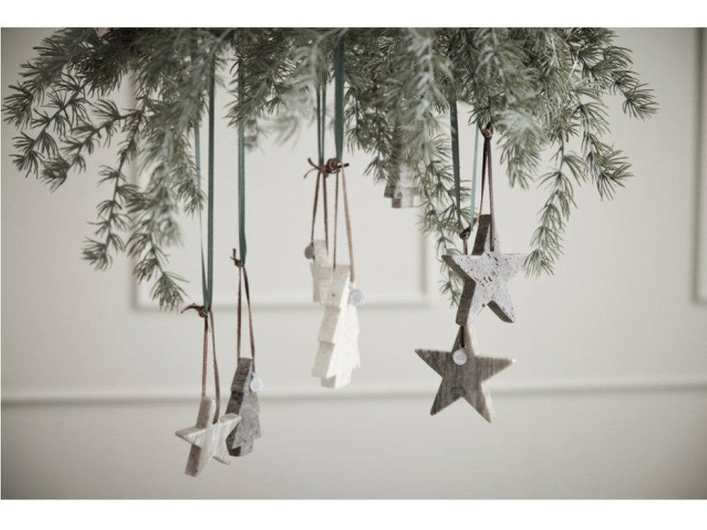 Ozdoby jsou zavěšeny na kožené šňůrce v hnědém tónu, která krásně kontrastuje s kamenem a zároveň dodává celku lehce rustikální výraz. Každou ozdobu doplňuje malý kovový plíšek s logem Lene Bjerre, který podtrhuje její původ a kvalitu. Díky své jednoduchosti se tyto dekorace snadno kombinují, ať už je zavěsíte na větvičky ve váze, vánoční stromek nebo adventní věnec, vždy působí decentně a stylově.