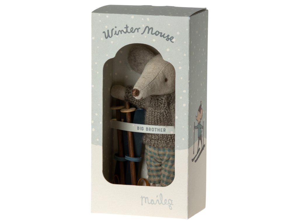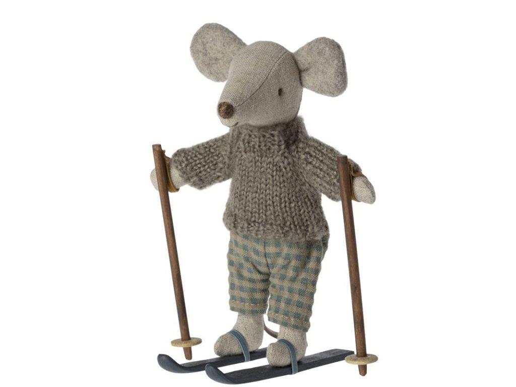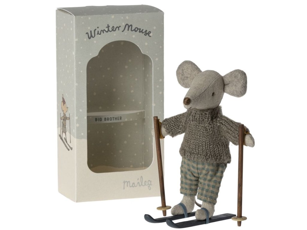 Zima je už za rohem, proto si pořiďte v setu myšáka Big Brother i s perfektní výbavou na svah. Myšák obléká hřejivý pletený svetr šedé barvy a kalhoty kostkovaného vzoru. Povinnou výbavou myšáka lyžaře jsou také dřevěné lyže a hůlky, které jsou opatřeny elastickým gumovým páskem, díky němuž nožky i tlapky snadno připevníte. Užijte si s myšákem spoustu legrace a dobrodružství. Teď už jenom čekat na pořádnou sněhovou nadílku :-)