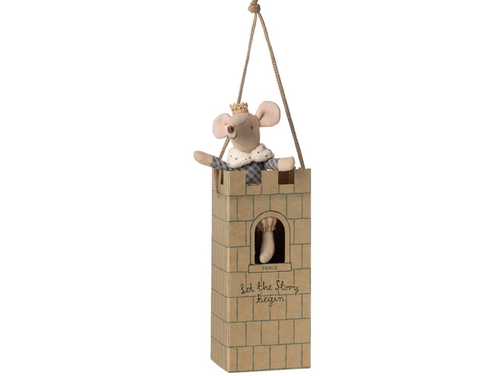 Myší princ přichází v krásné kartonové krabičce ve tvaru hradní věže s cimbuřím, okýnkem a ikonickým nápisem Let the Story Begin, který zve děti i dospělé do světa fantazie. Hradní věž může být scénou pro nová dobrodružství, hráčským koutkem i elegantní dekorací v dětském pokojíčku.