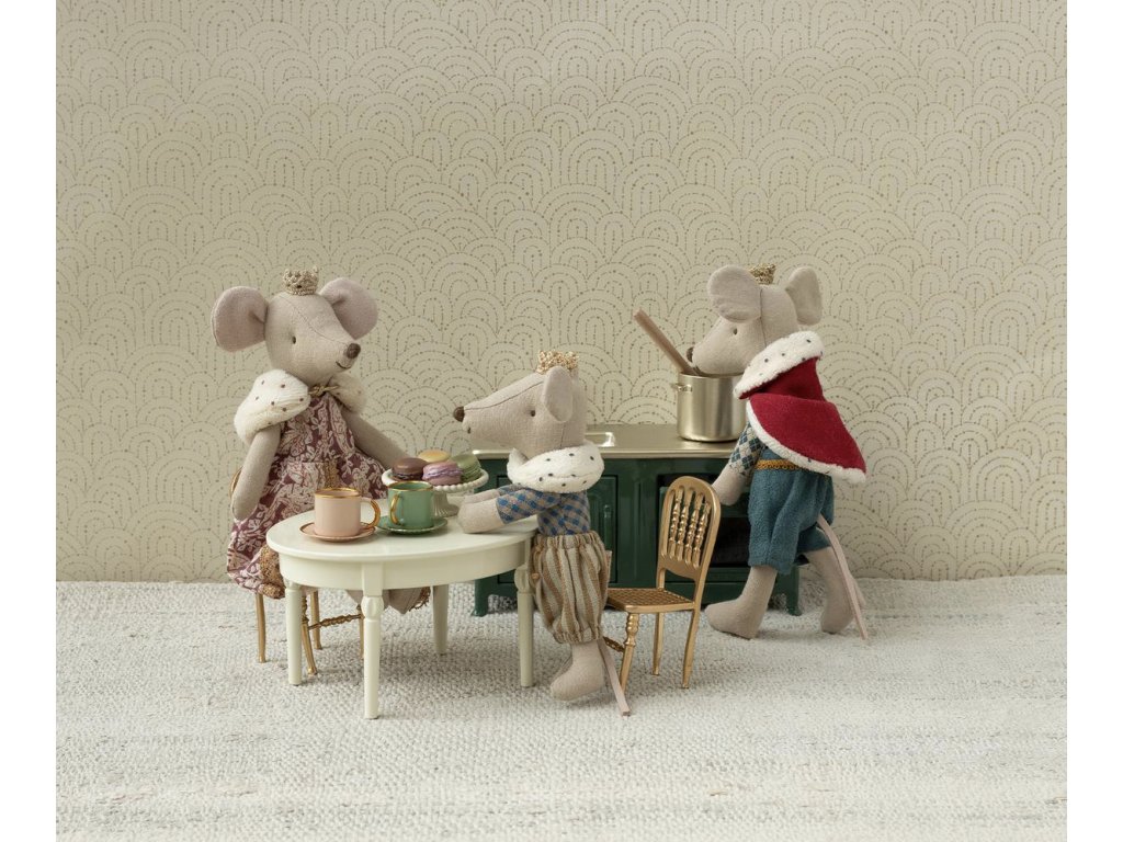 V samotném srdci myšího království, kde se v ranním světle třpytí hradní věže a kde každý den začíná novým dobrodružstvím, vyrůstá mladý a odvážný Myší princ. Malý následník trůnu s laskavýma očima a velkou fantazií, který je připraven psát své vlastní kouzelné příběhy. Princ měří 13 cm a je oblečený do slavnostního oděvu, který mu dodává šarm a královskou eleganci.