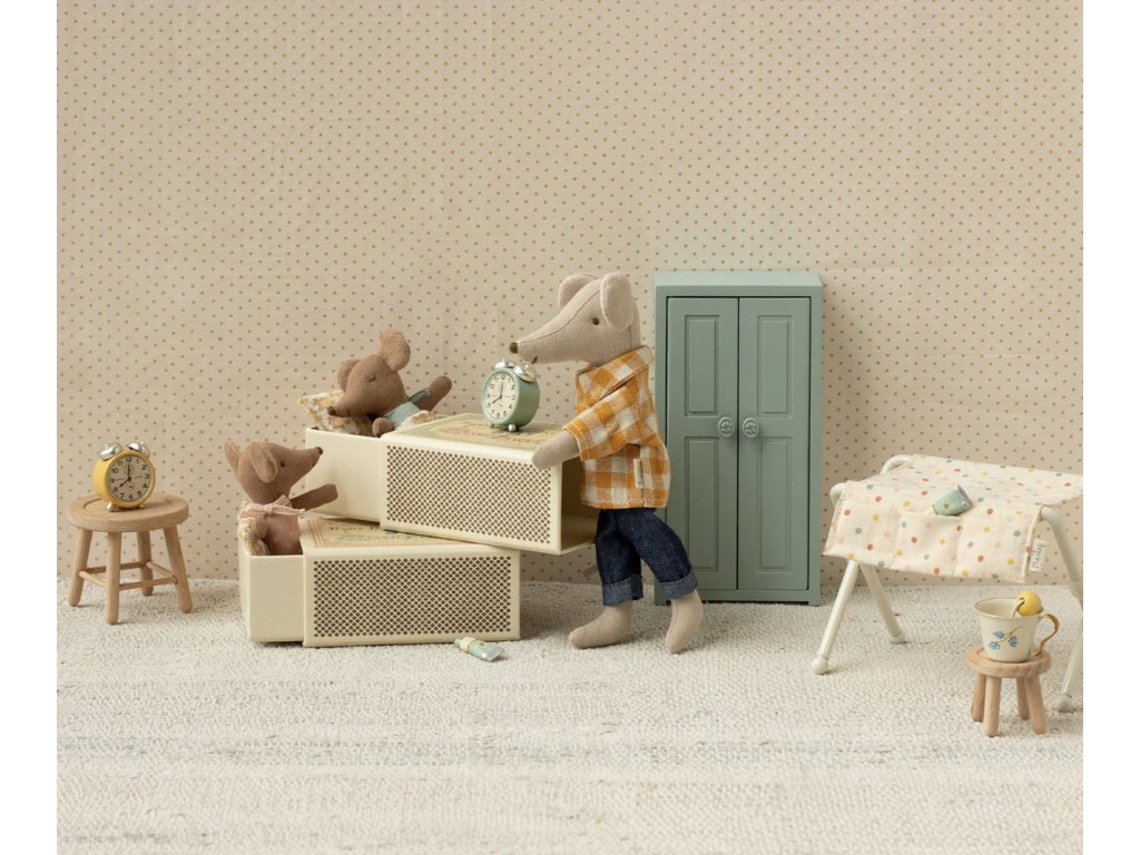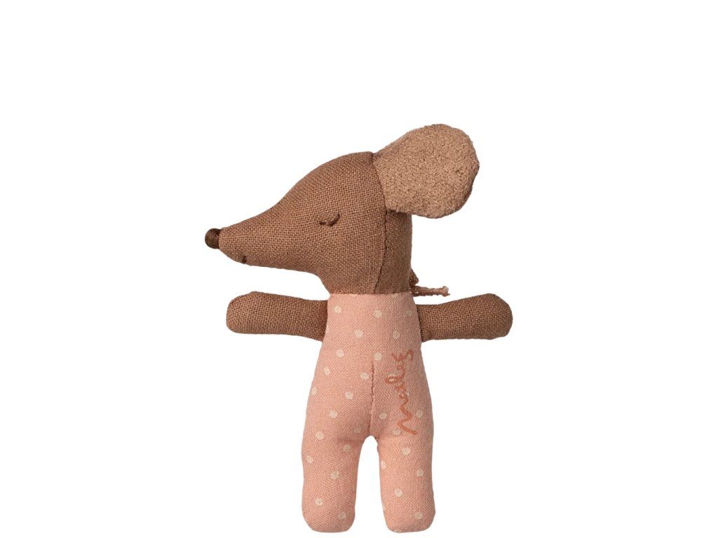 Myška je ušitá z hebké bavlny s měkkou výplní a svou drobnou velikostí se dokonale hodí do malých dětských dlaní i do domečků Maileg. Snadno si ji zamilujete pro její roztomilé detaily – mašličku, pyžamko i miniaturní přikrývku. Krásně se doplňuje s dalšími myškami z kolekce, a tak může být součástí celé myší rodiny nebo se stát malým kamarádem na cesty i na dobrou noc.