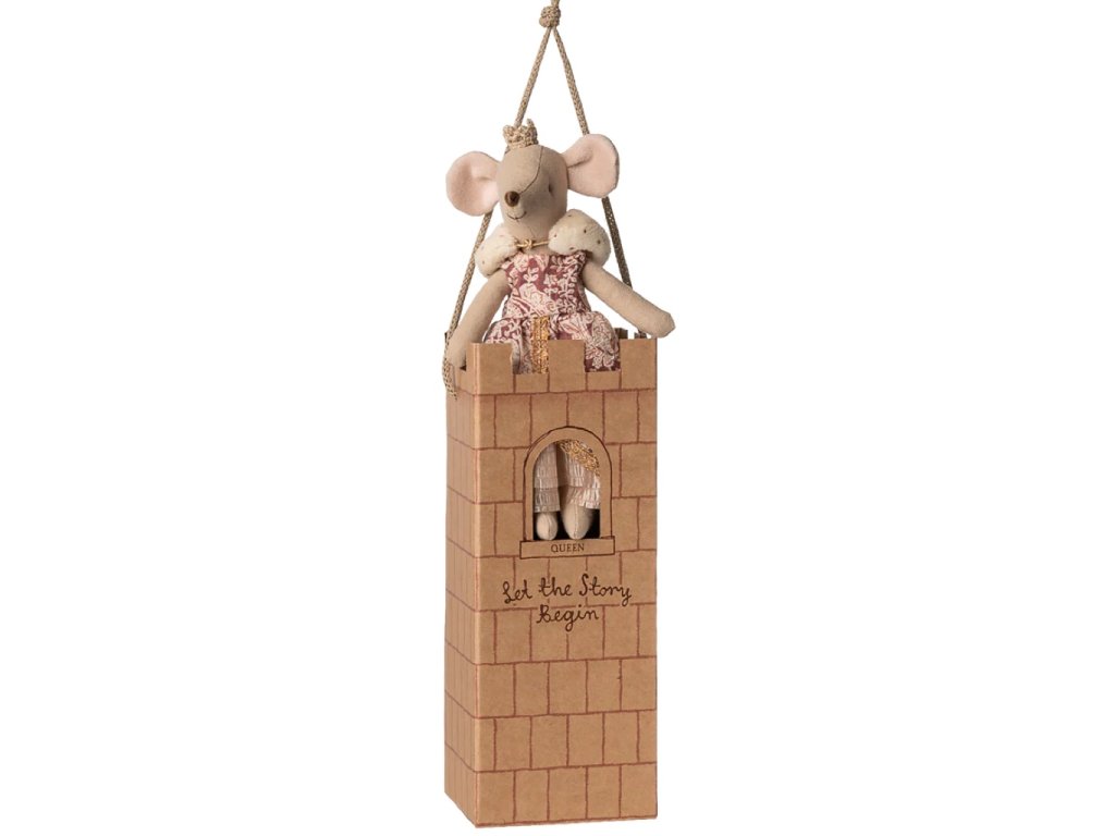 Myší královna přichází v krásné kartonové krabičce ve tvaru hradní věže s cimbuřím, malým okýnkem a ikonickým nápisem Let the Story Begin, který vybízí děti i dospělé otevřít dveře do světa fantazie. Věž poslouží jako součást hry, scénář k novým příběhům, ale také jako krásný výstavní kousek v pokojíčku.