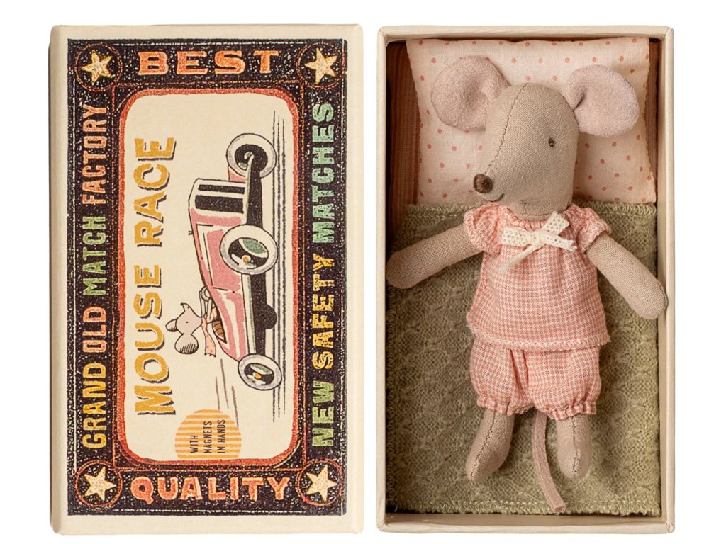 Maileg je dánská značka, která si získala srdce dětí i dospělých po celém světě svým něžným, poetickým světem malých zvířátek, domečků a doplňků. Založila ji designérka Dorthe Mailil, která do každého detailu vkládá lásku k příběhům, hravosti a kvalitnímu řemeslu. Nejikoničtějšími postavičkami jsou myšky v krabičkách od sirek, králíčci a další zvířecí kamarádi, každý s vlastním charakterem, šatníkem a dobrodružstvím.