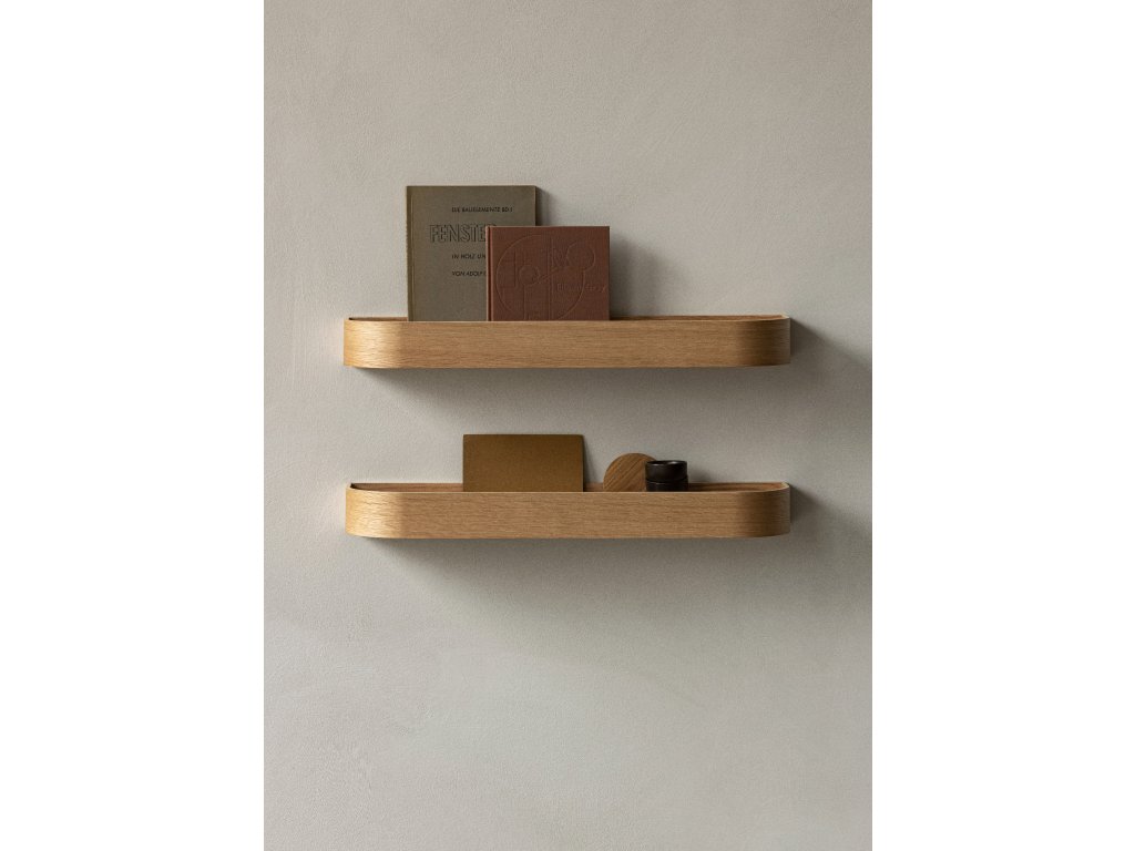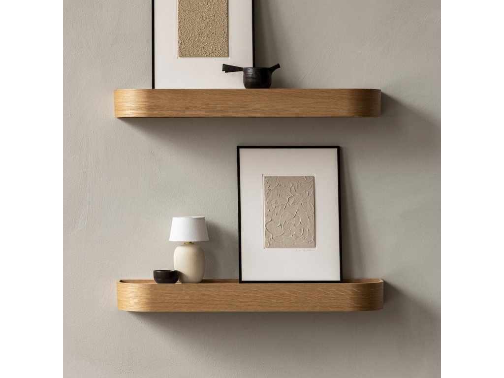 Nástěnná police Epoch Shelf je vyrobena z dřevěné dýhy a díky zaobleným liniím krásně vynikne struktura dřeva. Police je variabilní a pouhým otočením ji lze použít pro více účelů. Z jedné strany využijete hloubku police k uložení každodenních předmětů, které nepotřebujete mít nutně na očích a naopak na mělkou stranu můžete umístit oblíbené dekorativní kousky. Police bude stylovým designovým prvkem v obývacím pokoji, pracovně, ale i v dětské pokoji či ložnici.
