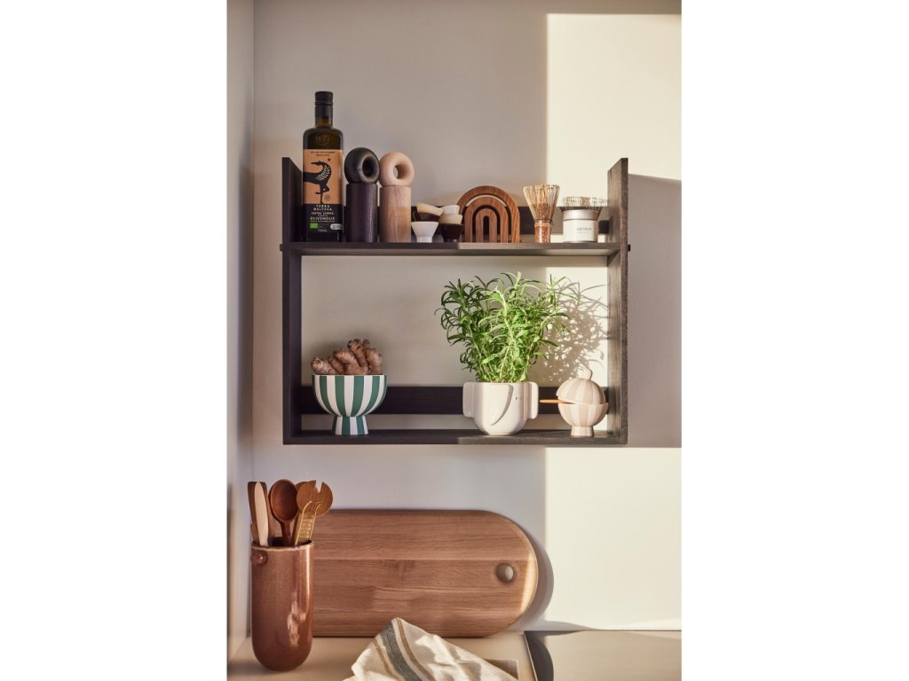 Nástěnná police Lojo od dánské značky OYOY je skvělým způsobem, jak maximalizovat využití prostoru v domě a zároveň přidat estetický prvek do vašeho interiéru. Police je vyrobená ze 100% mořeného jasanového dřeva v nádherně teplém čokoládovém odstínu, přičemž vynikne přirozená kresba dřeva. Polici Lojo využijete jak v kuchyni k uložení kuchařek, dochucovadel, mlýnků a podnosů, tak v obývacím pokoji k odložení rozečtených magazínů nebo oblíbených knih. Dřevěná police Lojo svým sofistikovaným designem zútulní každou místnost.