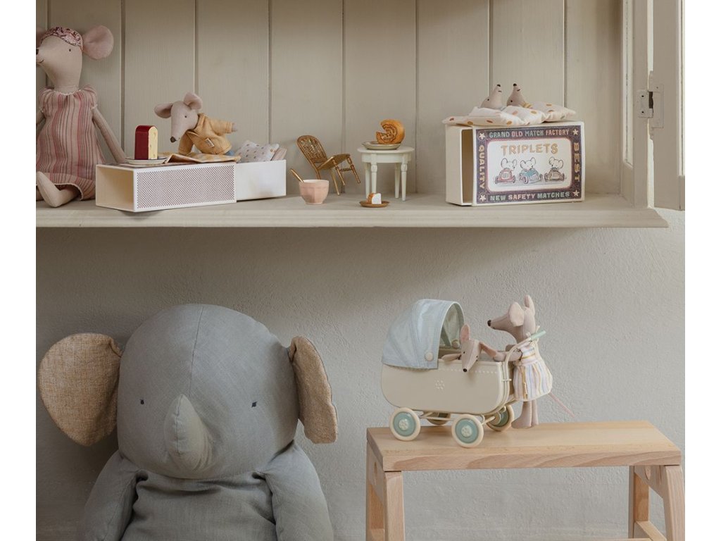 MAILEG je dánská značka, pro niž jsou typická roztomilá zvířátka a svět kolem nich. Svět tak trochu podobný tomu našemu, avšak, kde jsou si všichni rovni, kde se plní sny a dětská představivost nezná hranic. ♡ Tento vintage stoleček nesmí myškám v domečku chybět. Jde o univerzální a velmi praktický kousek, který lze využít v ložnici jako odkládací prostor na parfémy či oblíbenou knihu. Hodit se bude také pro partu přátel až budou myšky servírovat čaj o páté. :-) Vybavte domeček Maileg stylovými a překrásnými doplňky, které jsou propracované do posledního detailu. Zařiďte roztomilým malým stvořením domov snů a vrhněte se s námi do kouzelného pohádkového světa.