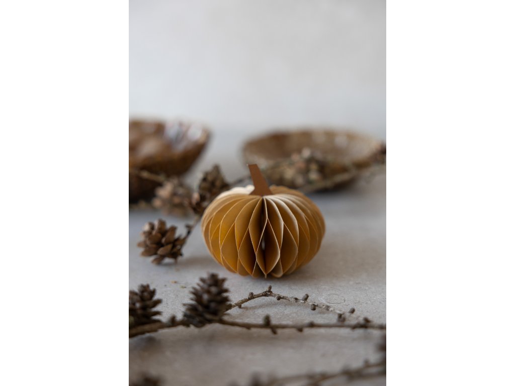 Papírová dekorace Lundhagen ve světle hnědém odstínu je jako malá podzimní dýně, která vnese do vašeho domova hřejivou přírodní atmosféru. Její složený papírový tvar působí lehce a vzdušně, přesto krásně plasticky – světlo na jejím povrchu vykresluje jemné stíny a dává vyniknout každému záhybu.